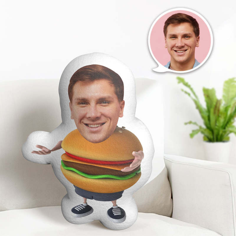 Benutzerdefinierte Gesichtskissen Minime Puppen Hamburger Mann Personalisierte Fotogeschenke