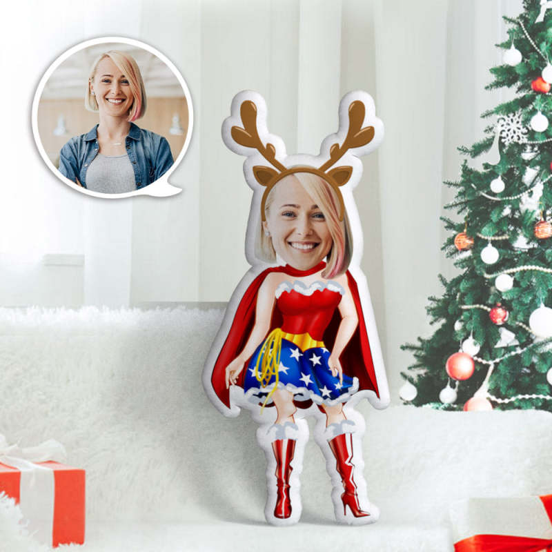 Superwoman Personalisiertes Kissen mit Gesicht Weihnachtsgeschenk Rentier MiniMe Kissen mit Foto Weihnachtsgeschenke