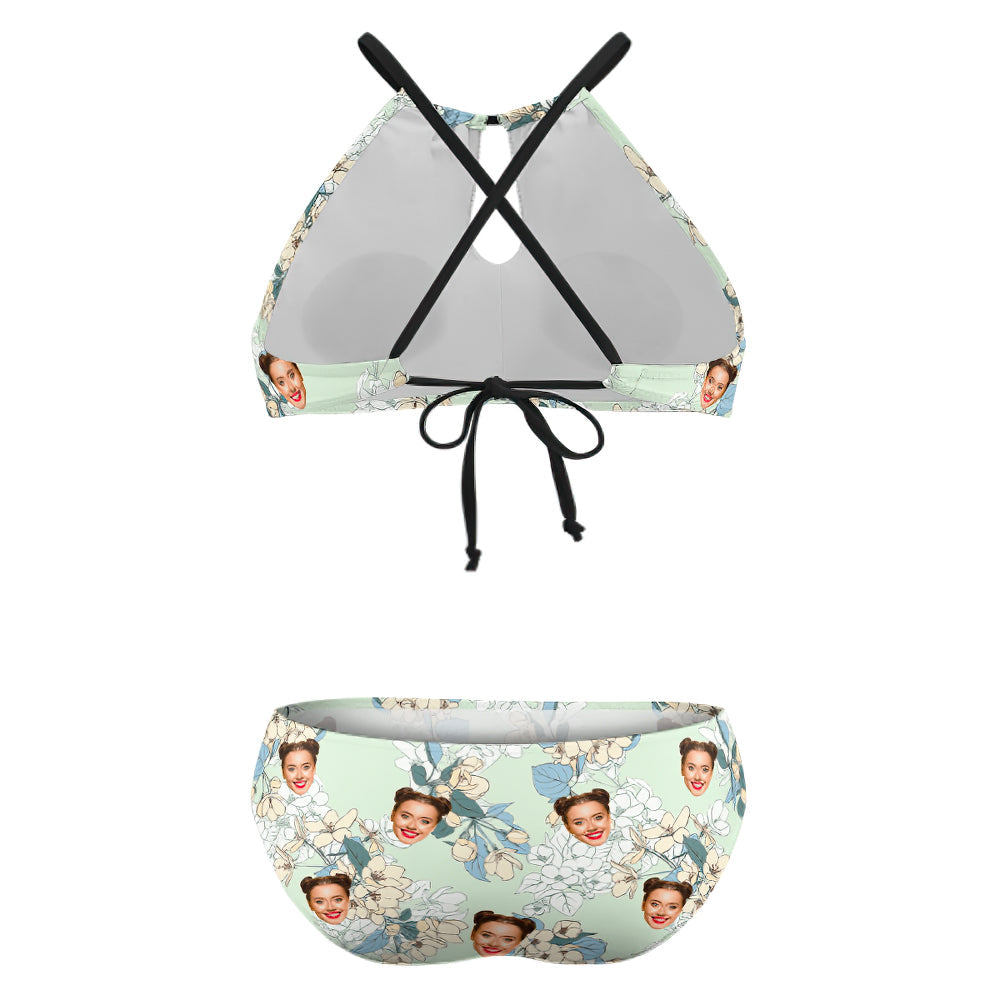 Custom Face Badebekleidung In Übergröße, Exquisiter Bikini-badeanzug Mit Blumendruck Und Hoher Taille