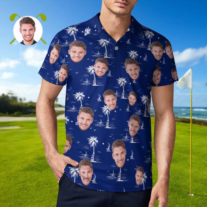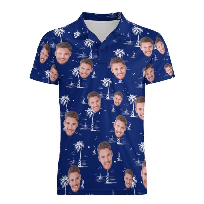 Personalisiertes Gesichts-poloshirt Für Männer, Kokosnussbaum-insel, Personalisierte Hawaiianische Golf-shirts