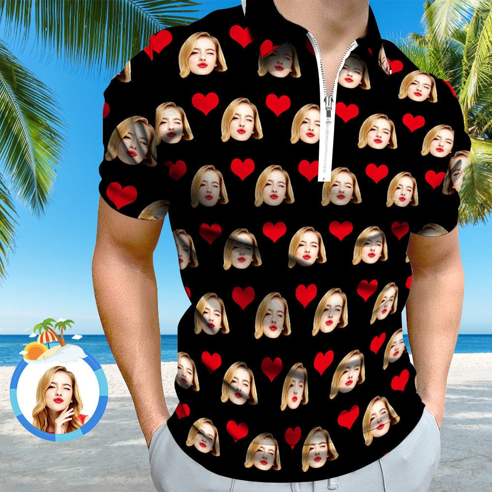 Benutzerdefiniertes Gesichts-poloshirt Mit Reißverschluss. Herren-poloshirt Für Freund Oder Ehemann