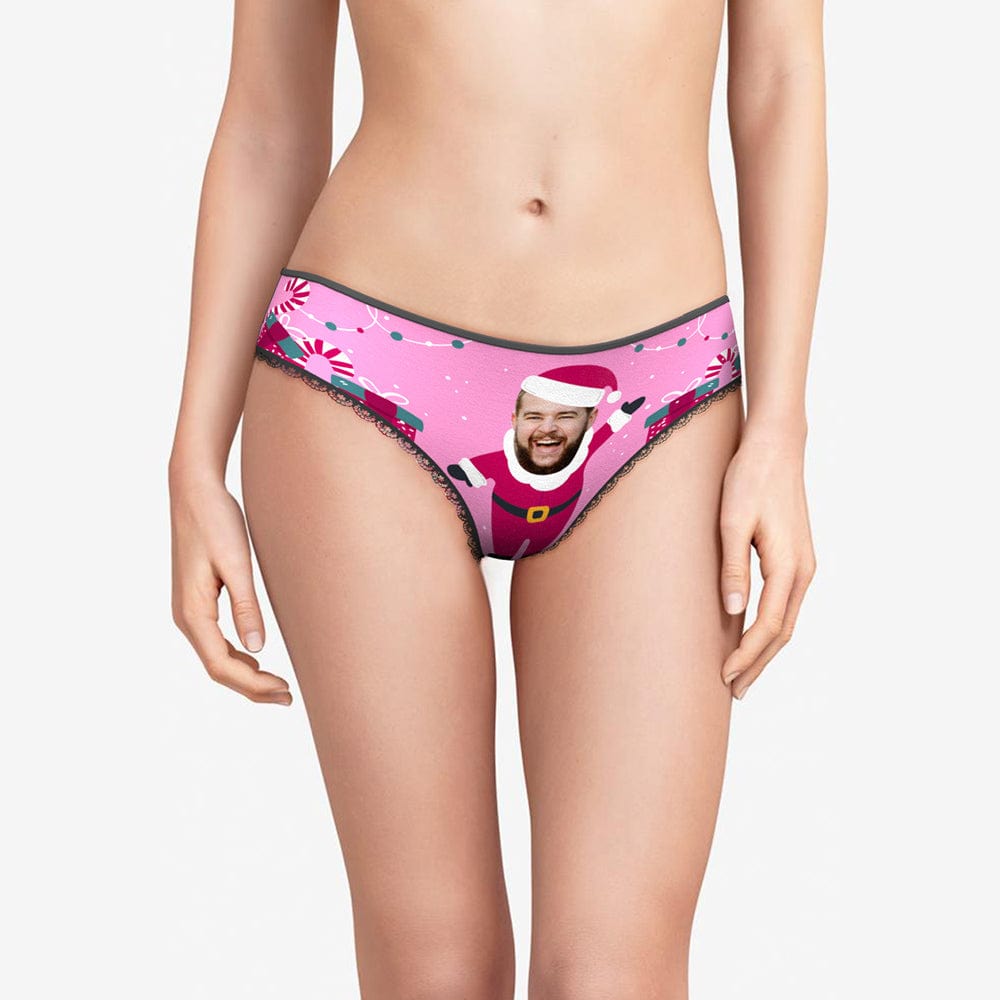 Personalisiertes Gesicht Santa ist hier Frauenhöschen personalisiertes Weihnachtsgeschenk