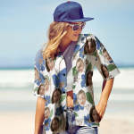 Benutzerdefinierte Gesicht Shirt Frauen und Kinder Hawaii-Hemden Kurzarm-Shirt Muttertag Geschenk blaue Blumen
