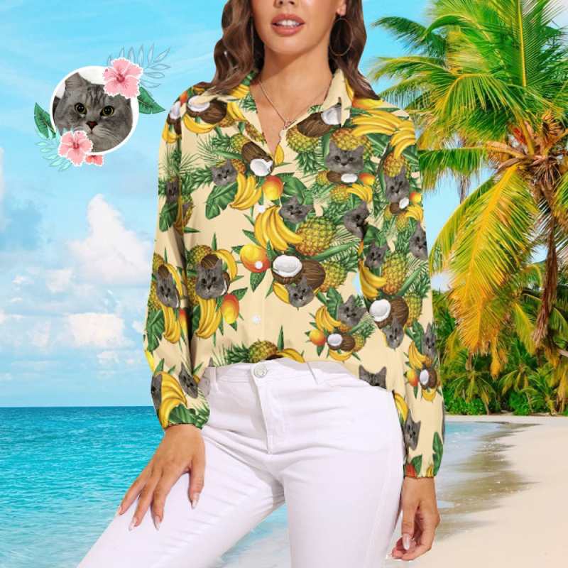 Kundenspezifische Haustier-gesichts-hawaii-hemden-tropische Frucht-lange Hülsen-hawaii-hemden Für Frauen