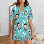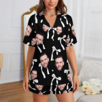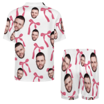 Personalisierter Kurzarm-pyjama Mit Foto, Schleife Und Gesichtsmotiv – Das Perfekte Geschenk Für Paare!