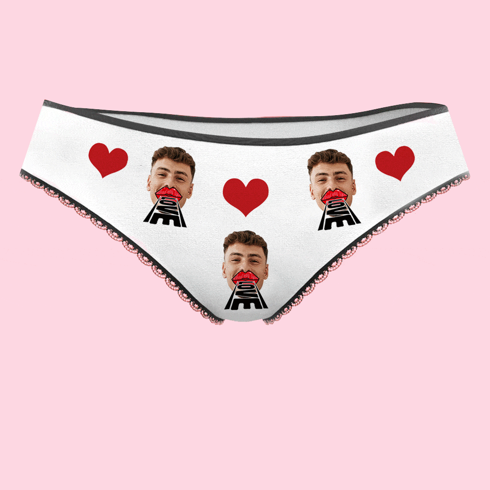 Personalisierte AR Unterwäsche mit Gesicht, roten Lippen und Herz Unterwäsche Geschenk für Freundin Frau