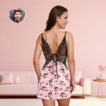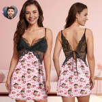 Benutzerdefinierte Gesicht Frauen Spitze Nachtwäsche Herz Zu Herz Personalisierte Foto Nachtwäsche Valentinstag Geschenk