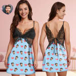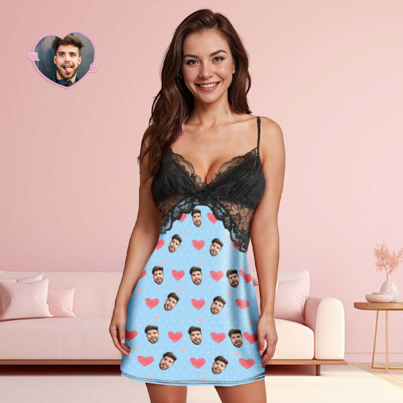Benutzerdefinierte Gesicht Frauen Spitze Nachtwäsche Rosa Herz Personalisierte Foto Nachtwäsche Valentinstag Geschenk