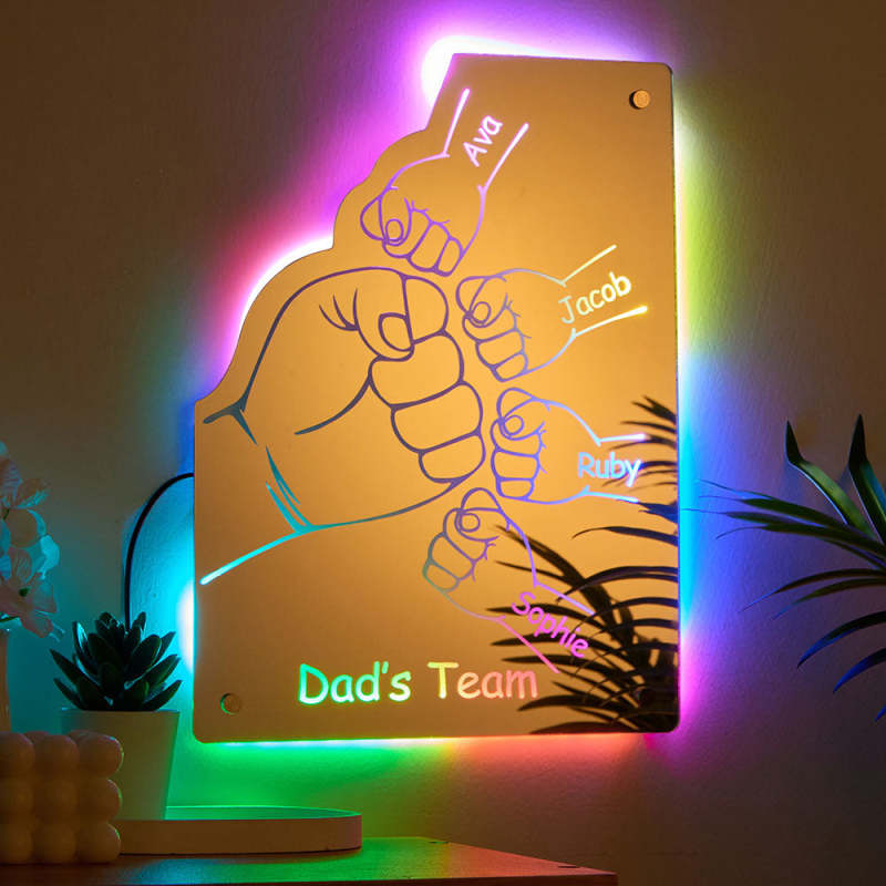 Personalisiertes Spiegellicht mit Familiennamen, Personalisiertes Spiegellicht für Vater Geburtstagsgeschenk