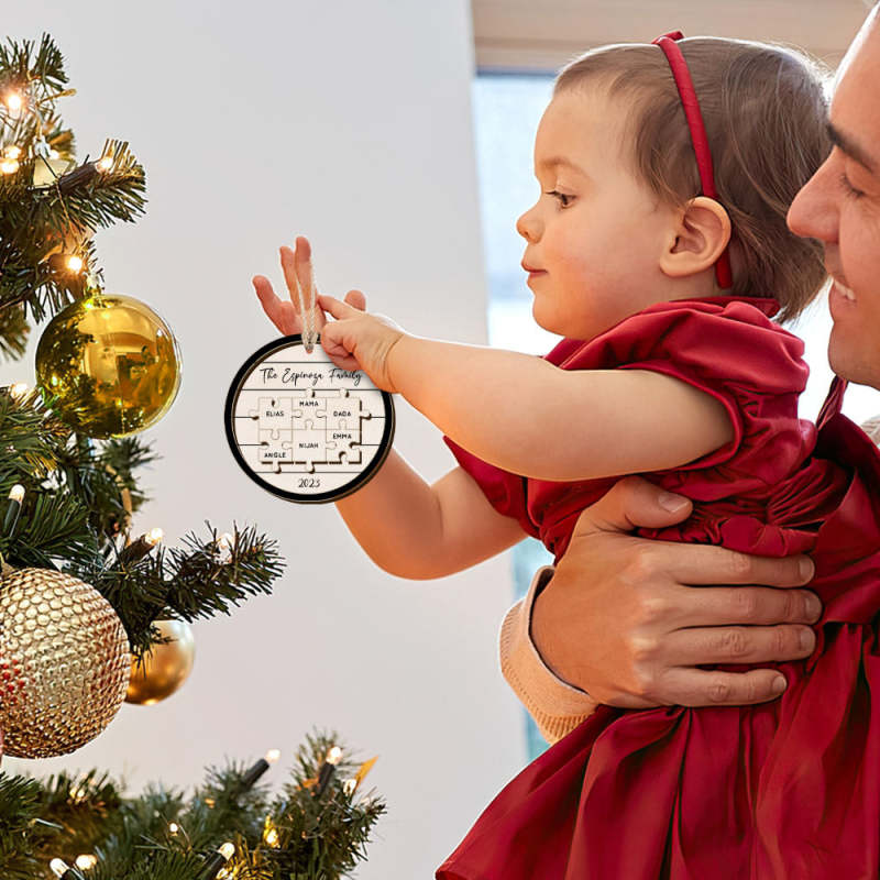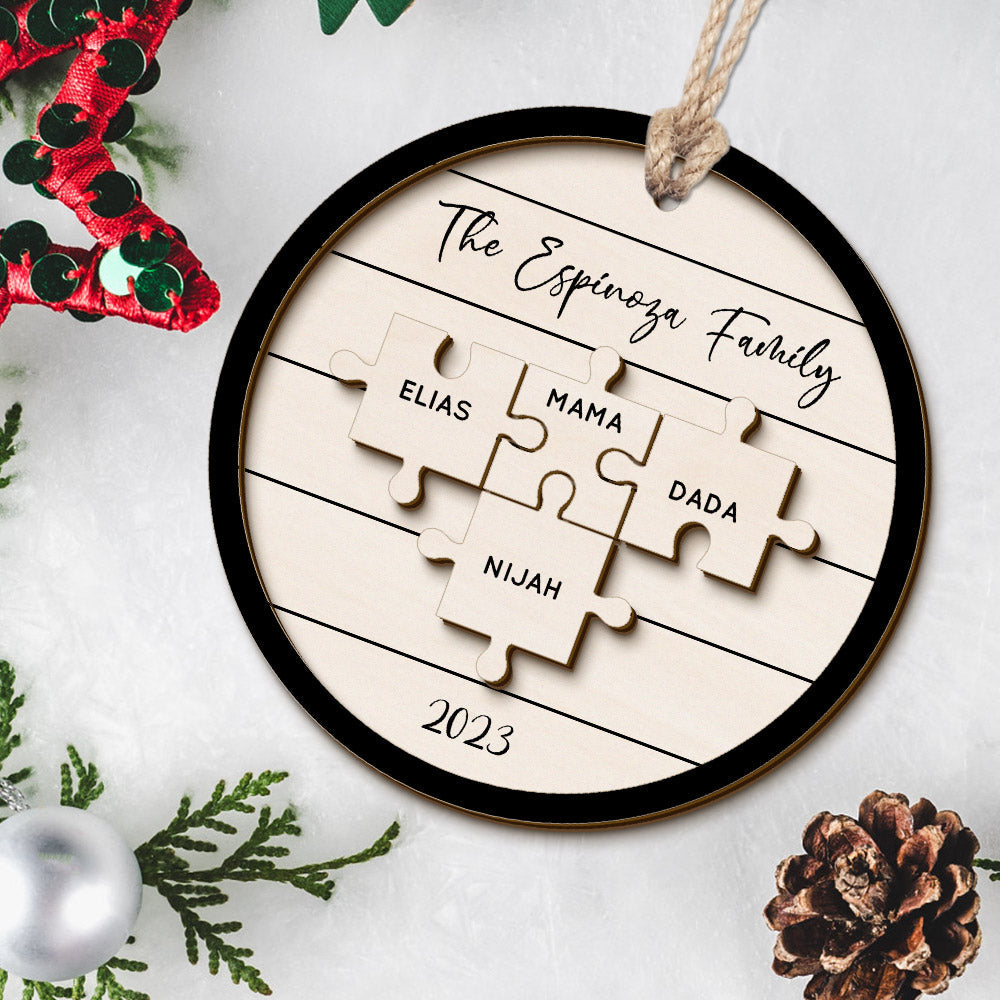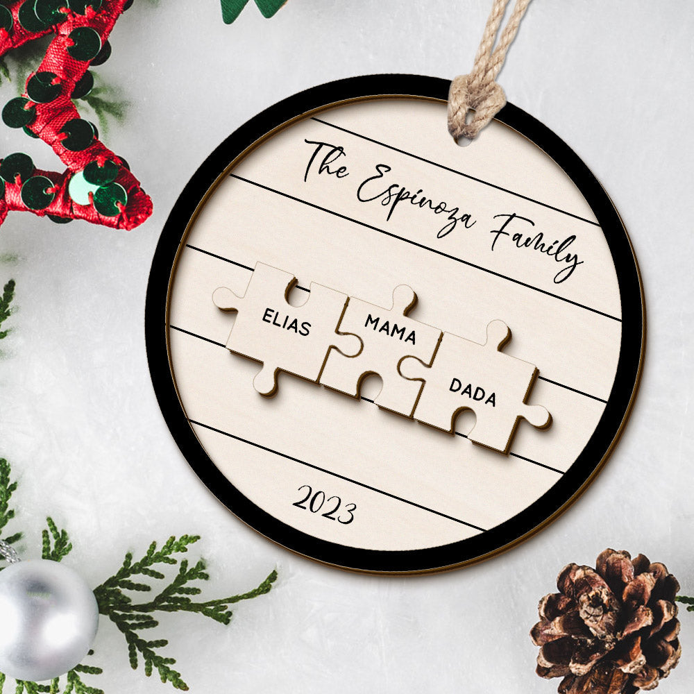 Personalisiertes Familiennamen-puzzle, Weihnachtsschmuck, Personalisierte Weihnachtsbaumschmuck-geschenke Aus Holz