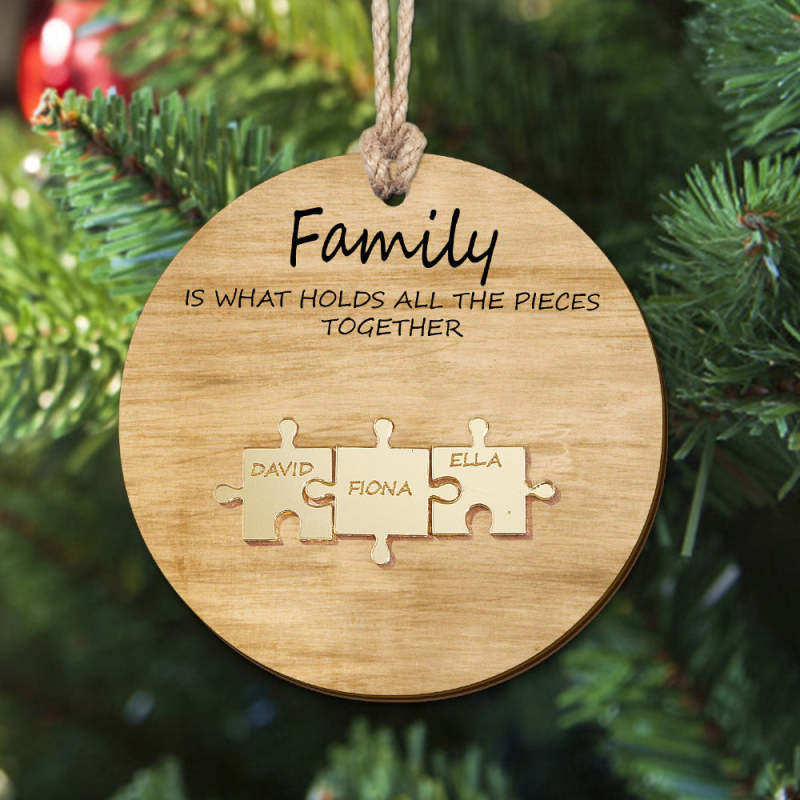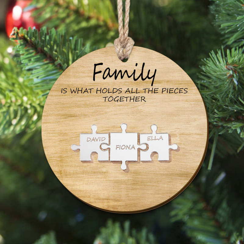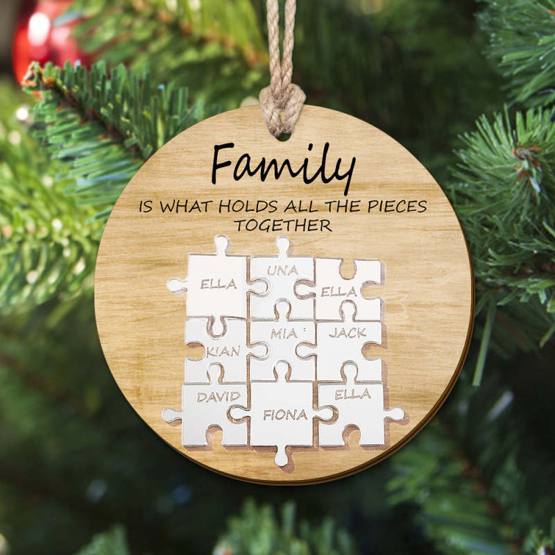 Personalisiertes Familiennamen-puzzle, Weihnachtsdekoration, Personalisiertes Holzornament, Weihnachtsgeschenke