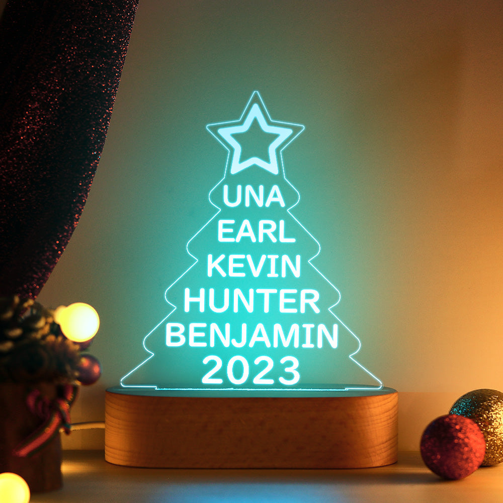 Benutzerdefinierte Familiennamen Weihnachtsbaum Nachtlicht Bunte Acryllampe Weihnachtsgeschenke