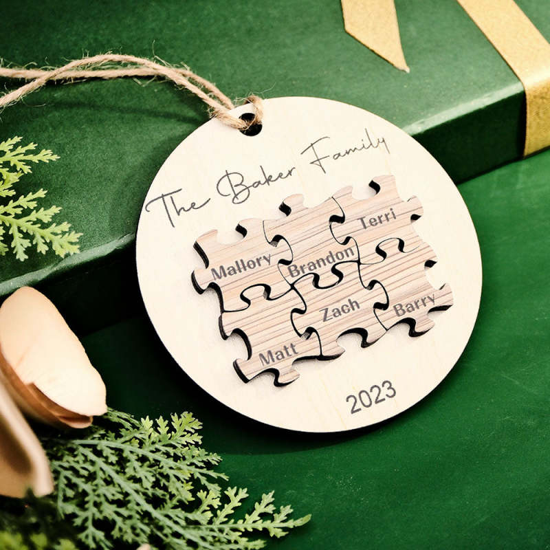 Personalisiertes Familienpuzzle Mit Namen, Weihnachtsdekoration, Personalisierte Holzdekoration Für Den Weihnachtstag