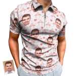 Benutzerdefiniertes Flamingo Love Herren-poloshirt, Personalisiertes Gesicht, Lustiges Poloshirt Mit Reißverschluss