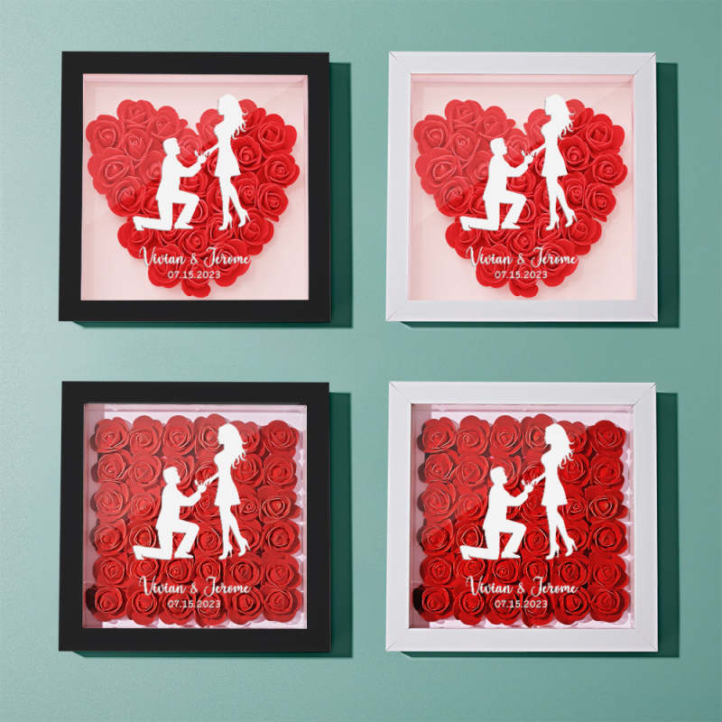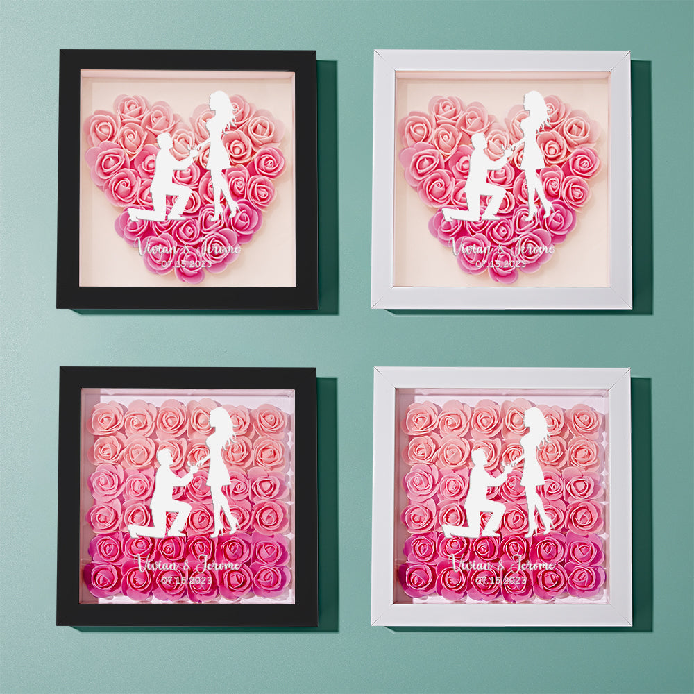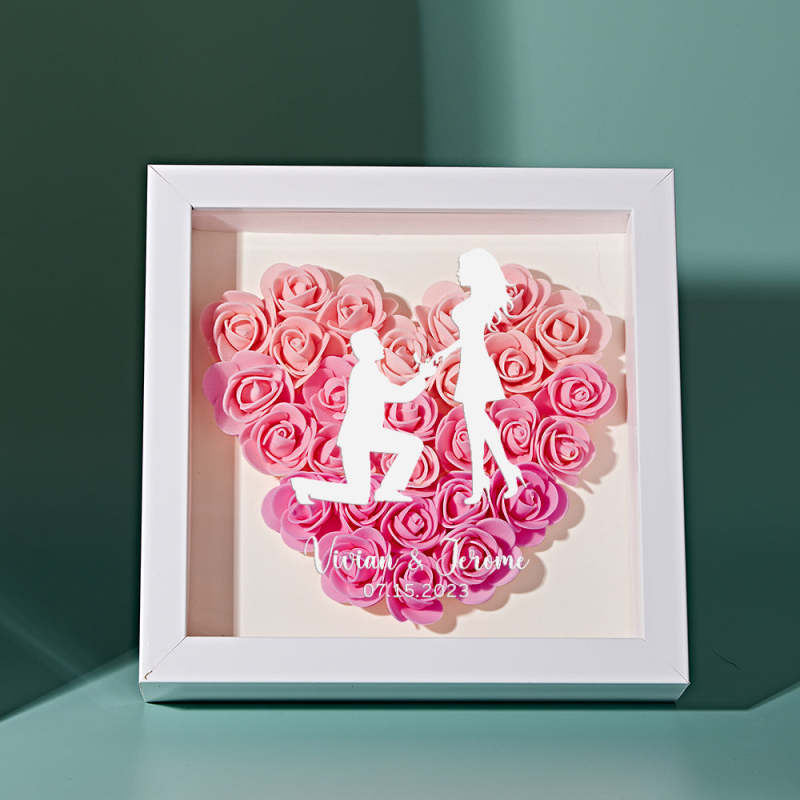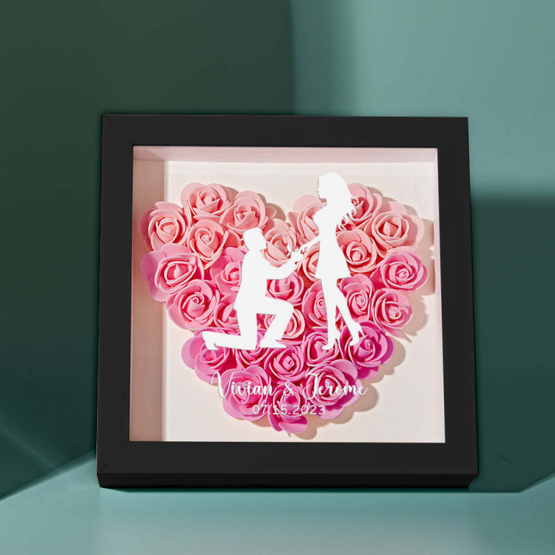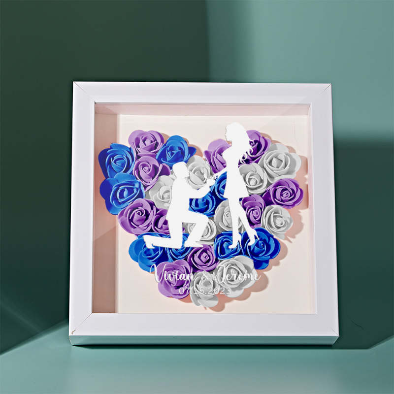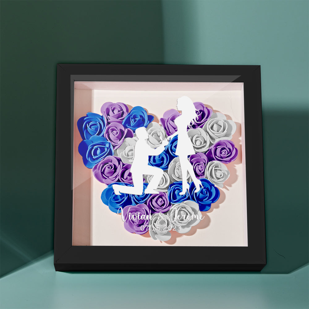 Benutzerdefinierte Blumen-schattenbox, Personalisierter Name, Blumen-schattenbox-rahmen, Geschenk Für Paare