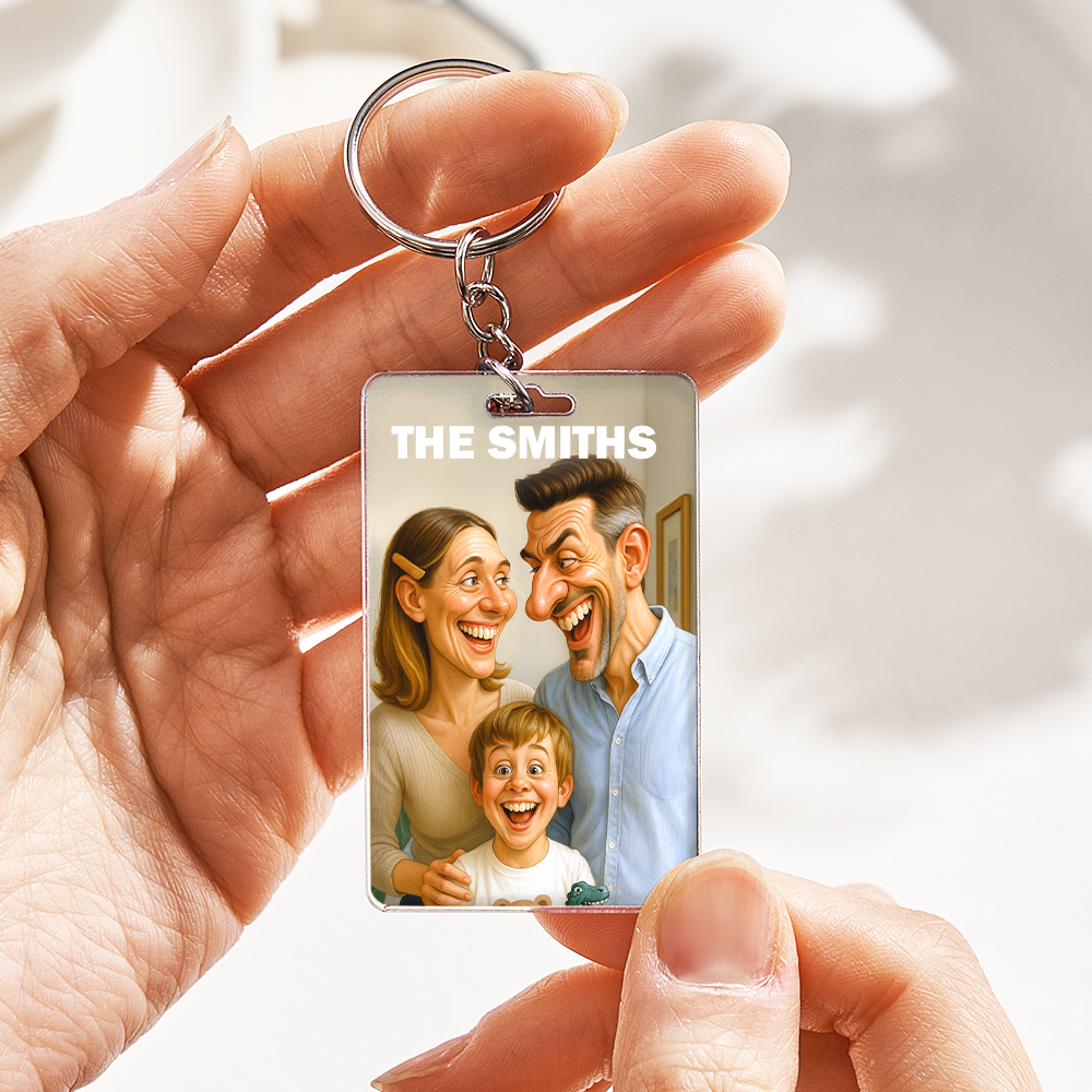 Personalisierter Lustiger Karikatur-porträt-schlüsselanhänger. Verwandeln Sie Ihr Foto In Ein Witziges Kunstgeschenk.