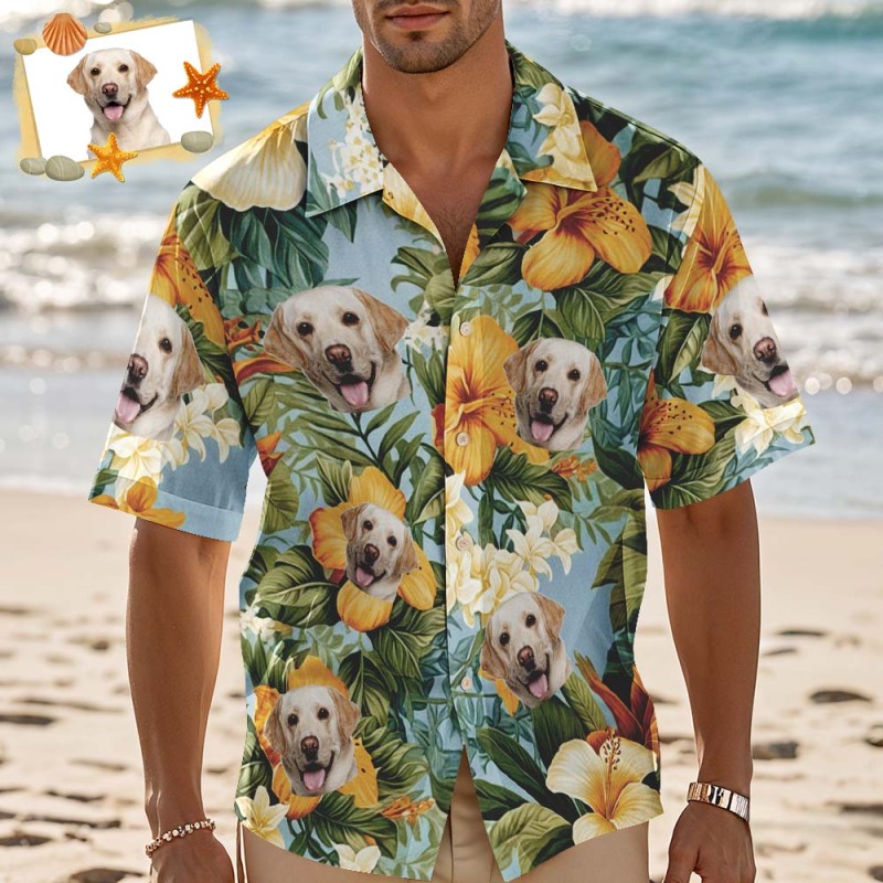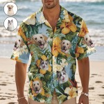 Benutzerdefiniertes Hawaii-hemd Mit Orangefarbenen Blumen, Personalisiertes Foto-hawaii-hemd, Lustige Urlaubs-party-hemden Für Haustierliebhaber