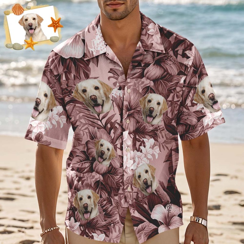 Benutzerdefinierte Hawaiian Shirt Rosa Blätter Personalisierte Foto Hawaiian Shirt Lustige Urlaub Party Shirts Für Haustiere Liebhaber