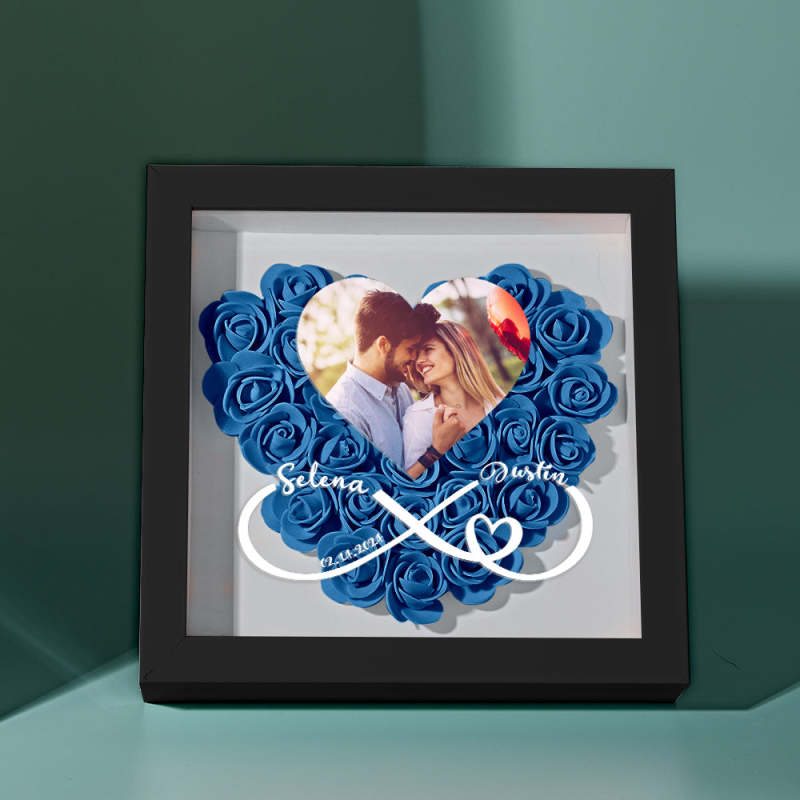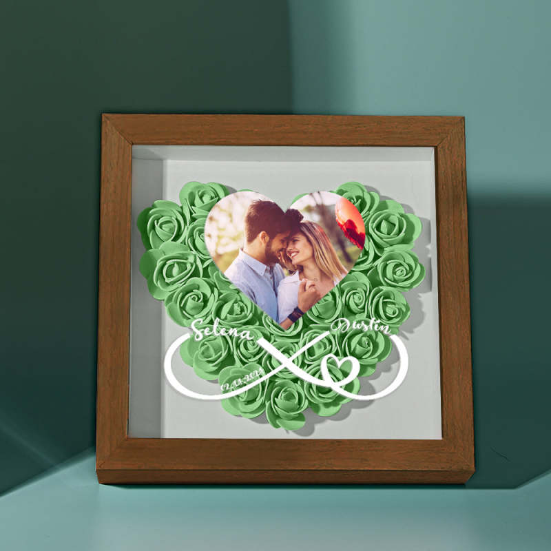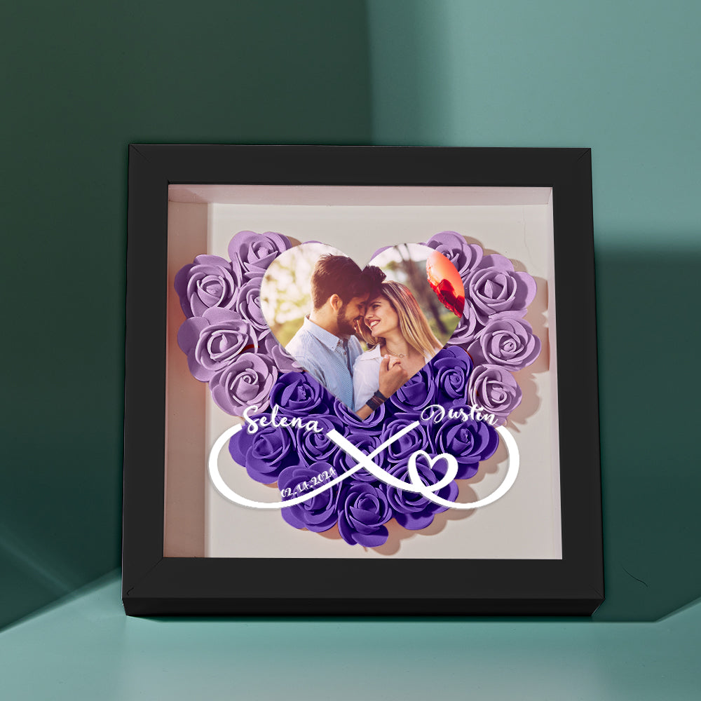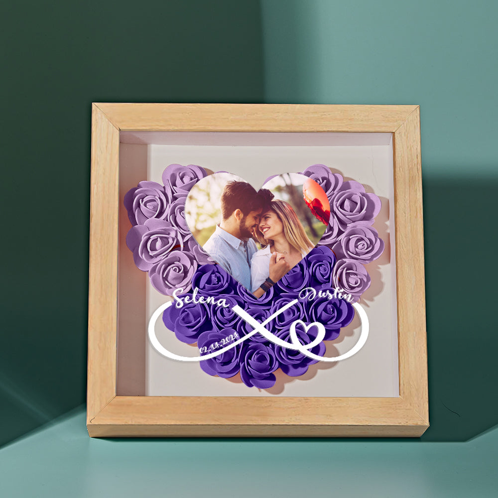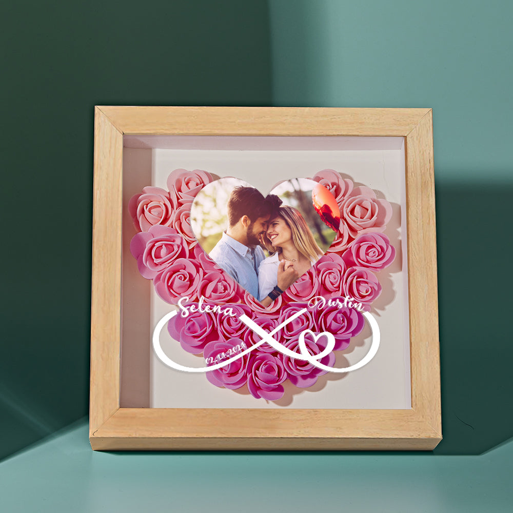 Individuelle Herz-blumen-schattenbox Mit Foto, Romantisches Geschenk Für Liebhaber