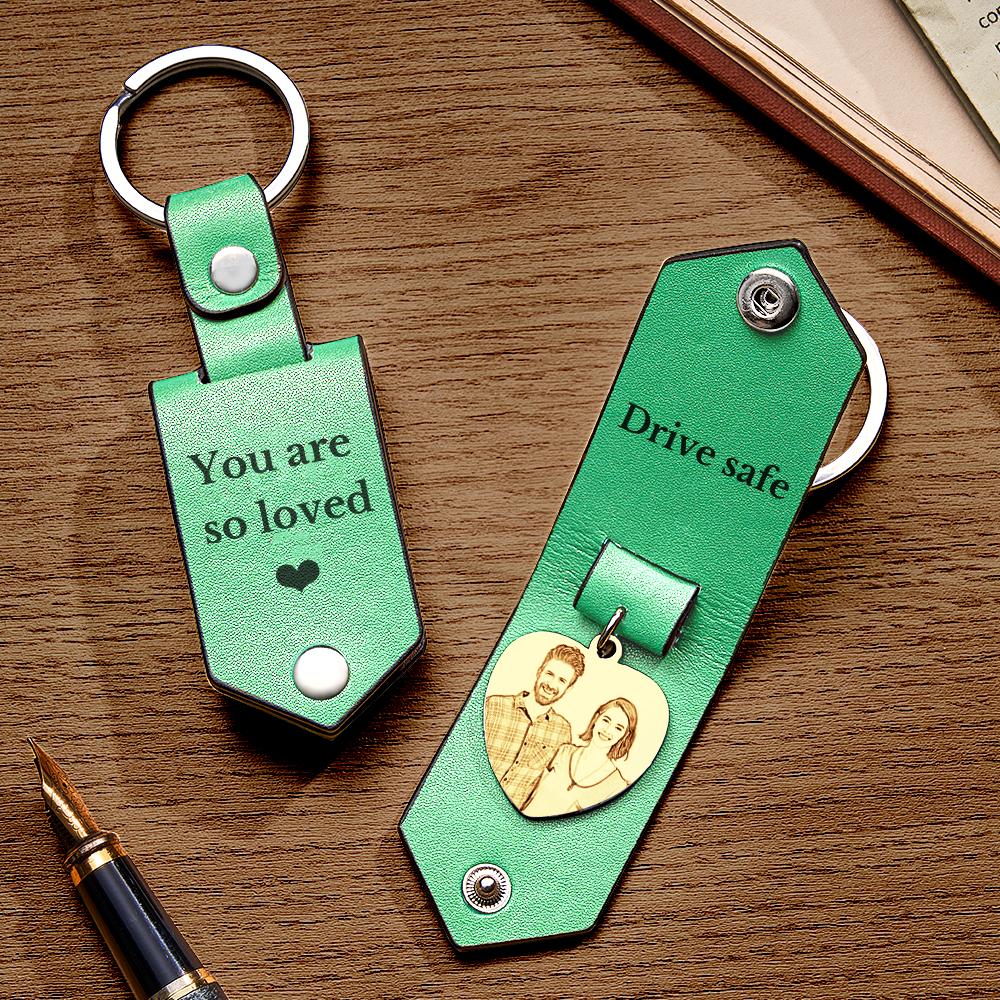 Personalisierter Herzförmiger Foto-schlüsselanhänger Aus Leder Mit Text, Jubiläumsgeschenke Für Männer