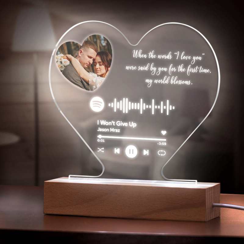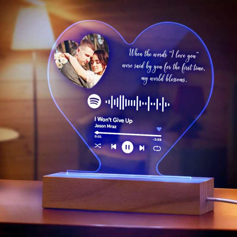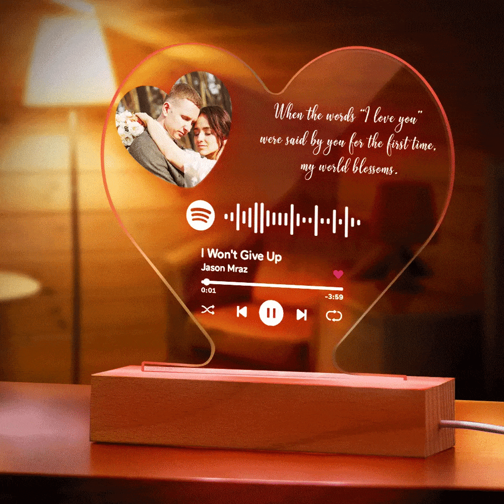Personalisierte Herzform Spotify Code Musik Plaque Nachtlicht eingravierten Text Plaque