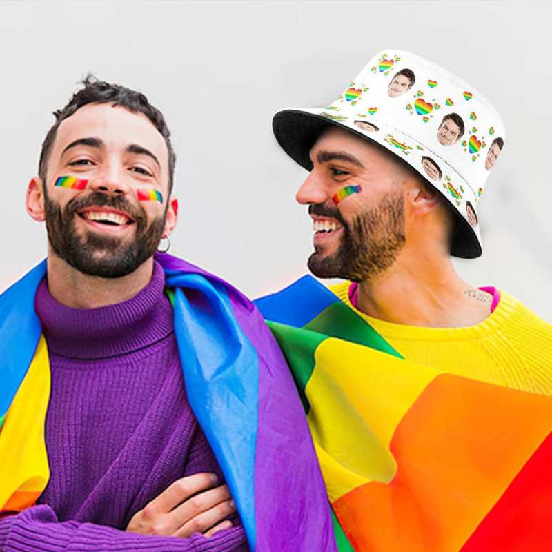 Individuell gestalteter LGBT-Eimerhut, Unisex-Regenbogenherzhut, Sommerhut mit breiter Krempe, Fischerhut