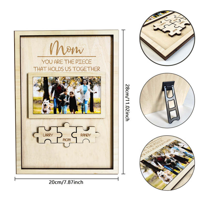Personalisierte Bilderrahmen für die Heimdekoration können mit dem Bild Ihrer Familie und dem Namen eines Familienmitglieds (bis zu 6 Namen) individuell gestaltet werden. Und stolz verkünden "Du bist das Stück, das uns zusammenhält" zu Mama.
