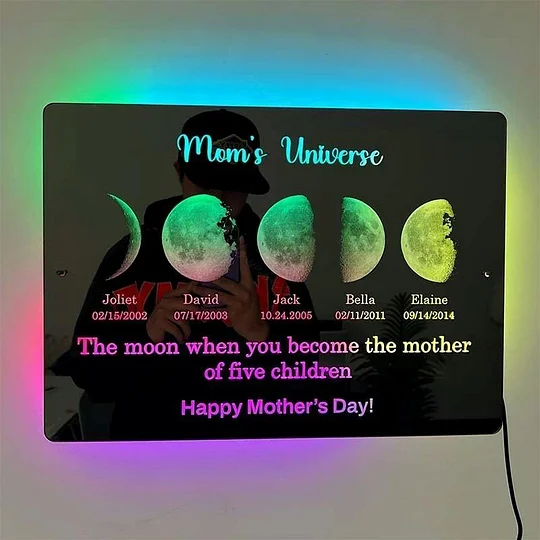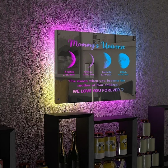 Personalisierter Mond-led-spiegellichtrahmen Mit Text Und Datum - Mamas Universum Geschenke zum Muttertag