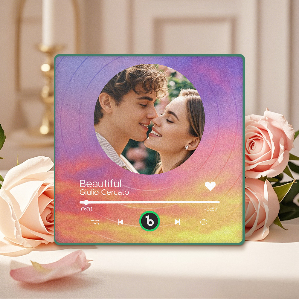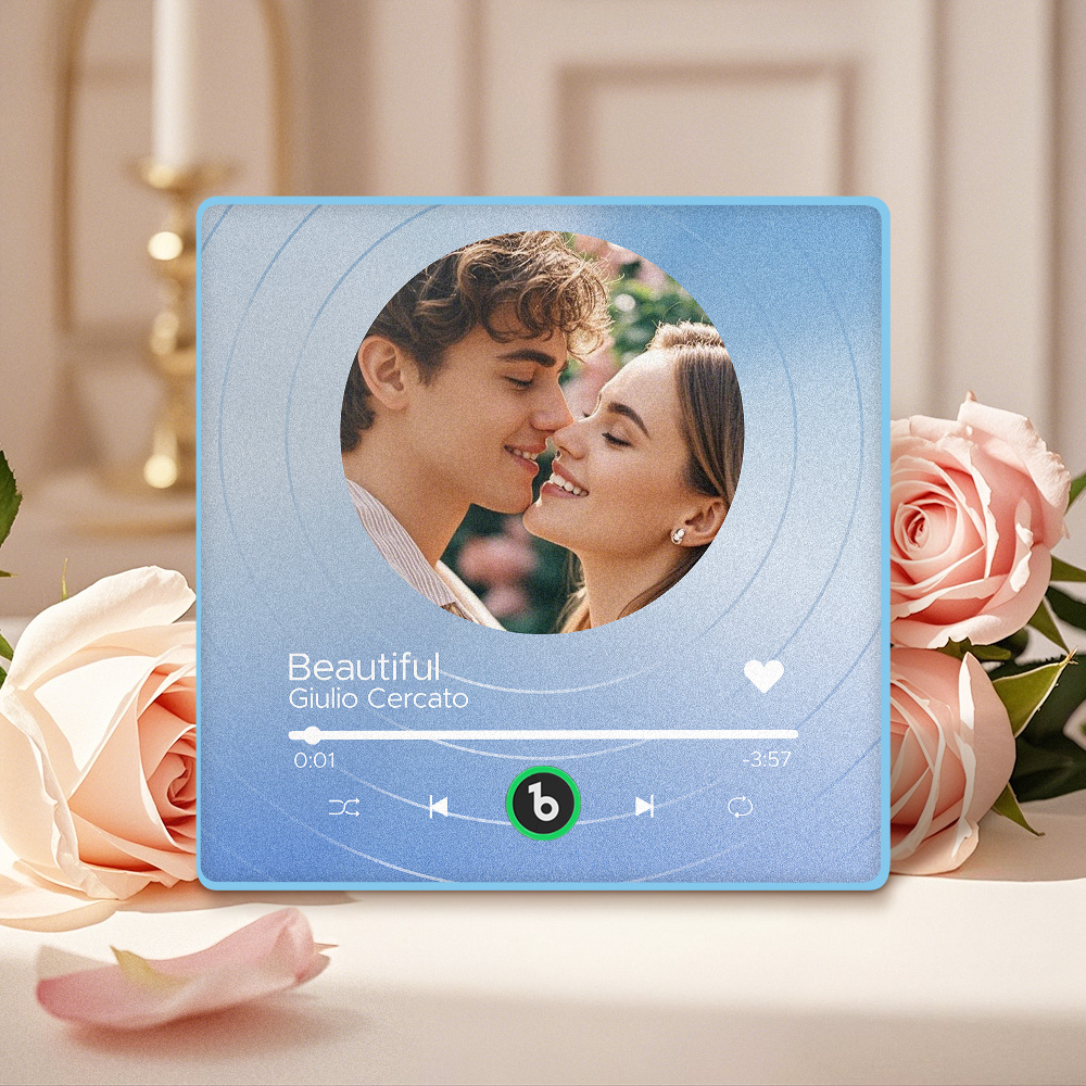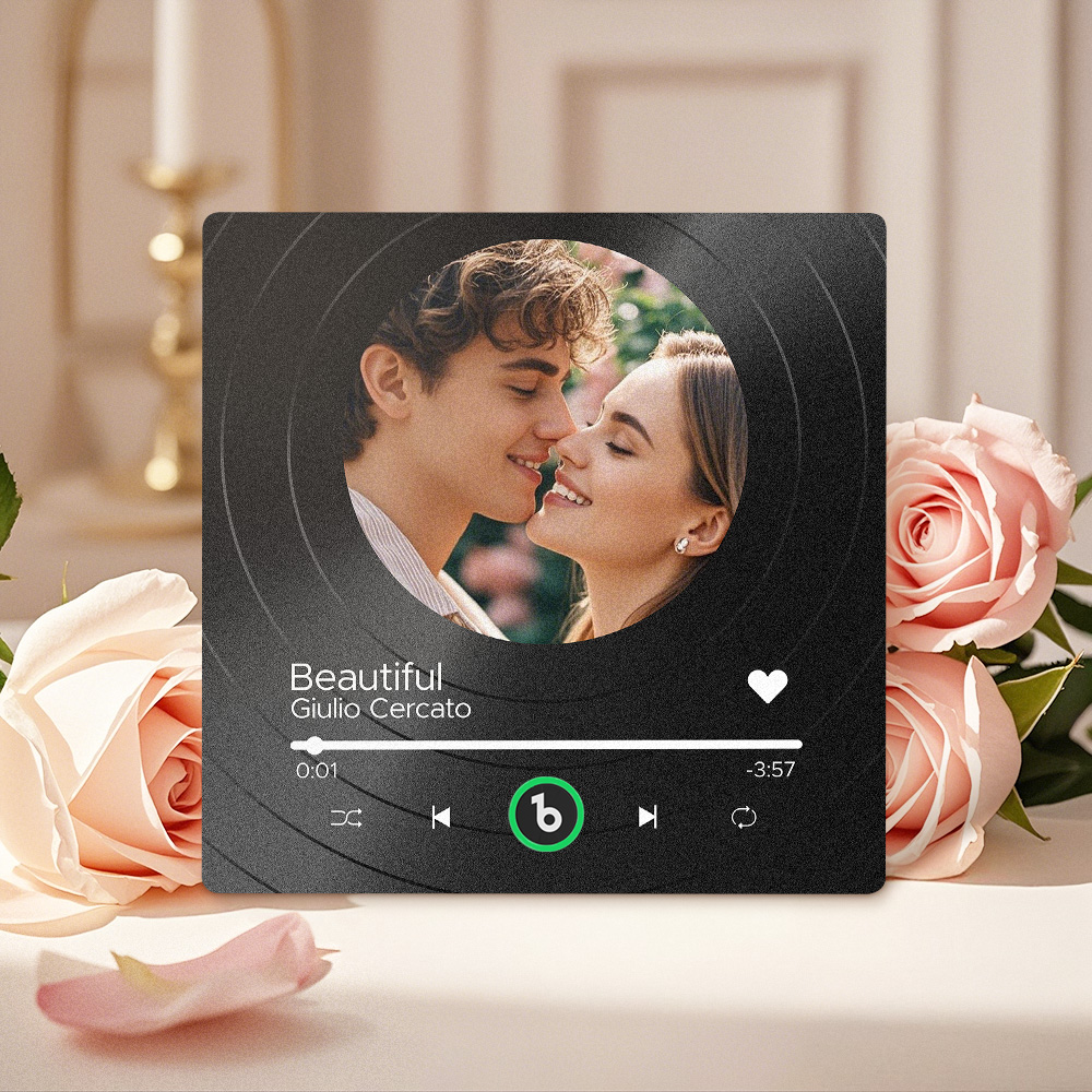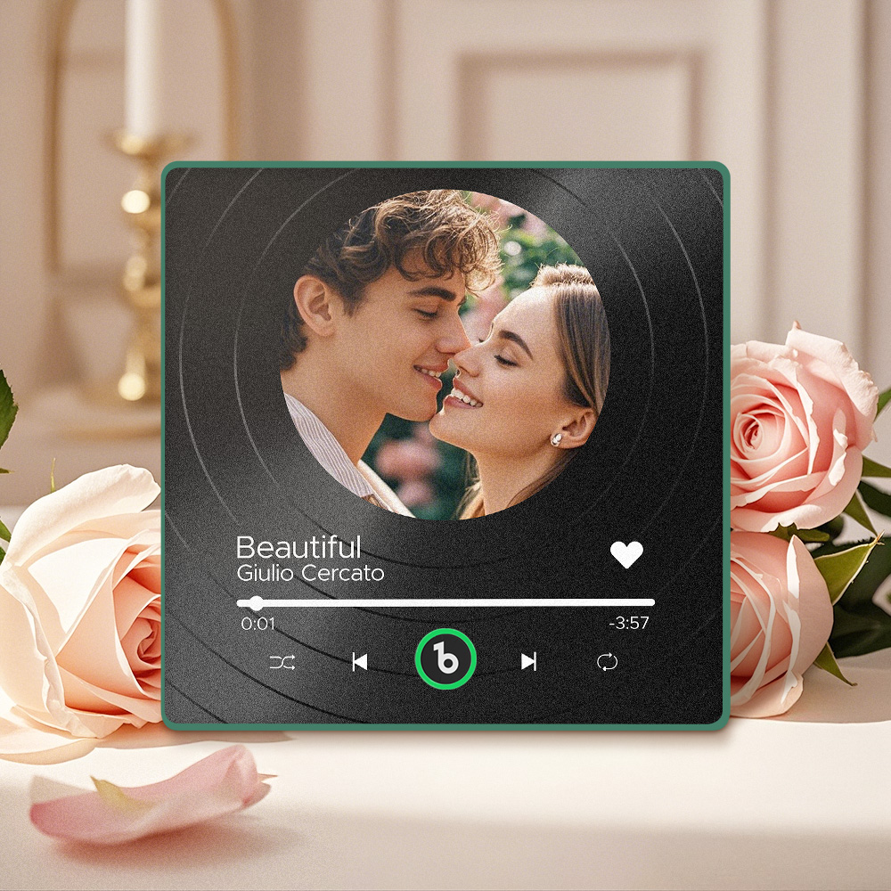 Personalisierter romantischer Kühlschrankmagnet mit Musik – Das perfekte Geschenk Erwecken Sie Ihre Lieblingsmusik zum Leben mit unserem personalisierten Album-Kühlschrankmagneten! Dieser innovative Magnet ist mehr als nur ein Deko-Objekt; er ist ein funktionales, interaktives Gerät, mit dem Sie Ihre Lieblingssongs direkt von Ihrem Kühlschrank abspielen können. Ob Sie beim Kochen eine entspannende Playlist hören oder beim Snacken Ihre Lieblingsmusik genießen möchten – mit diesem Kühlschrankmagneten ist alles möglich.