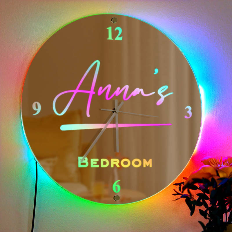 Personalisierte Namensuhr, Spiegelleuchte, Wanddekoration