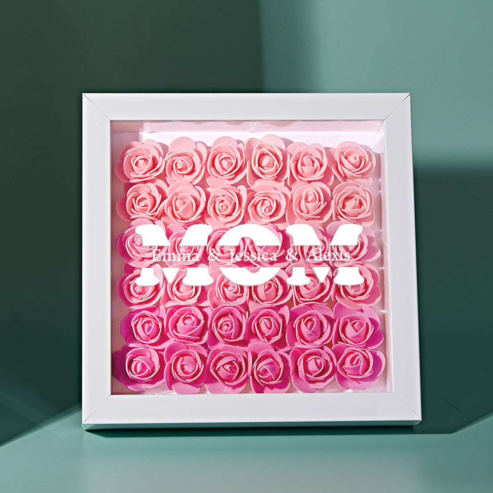 Benutzerdefinierter Namensblumen-schattenkastenrahmen Als Muttertagsgeschenk