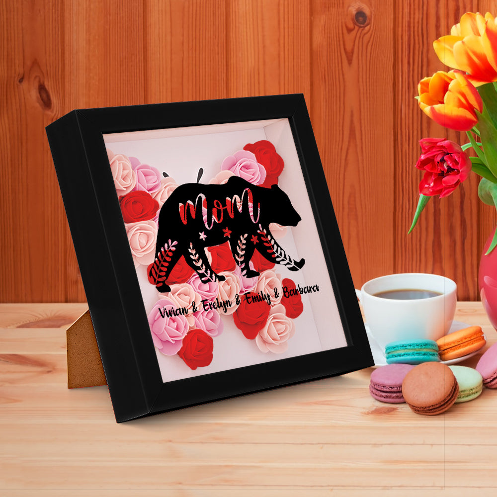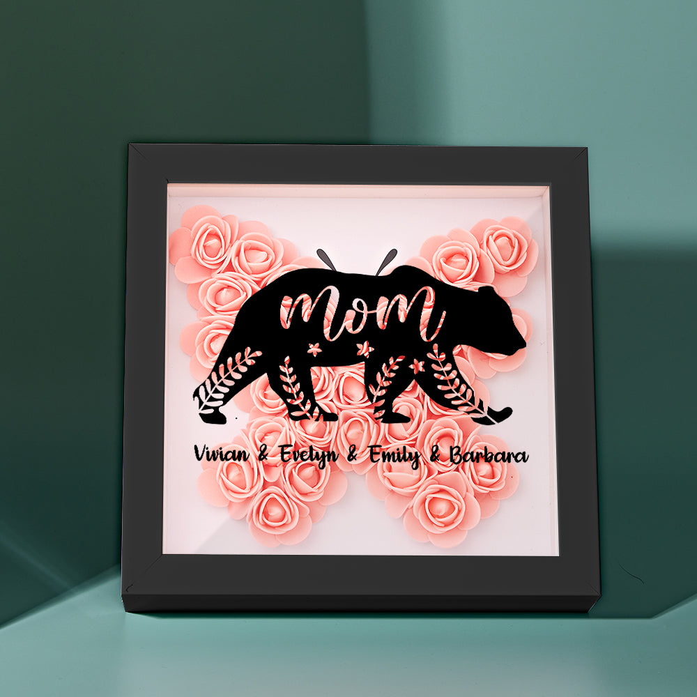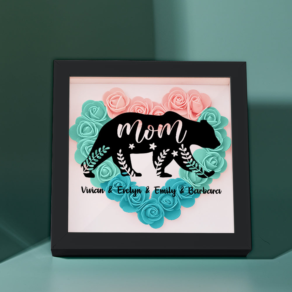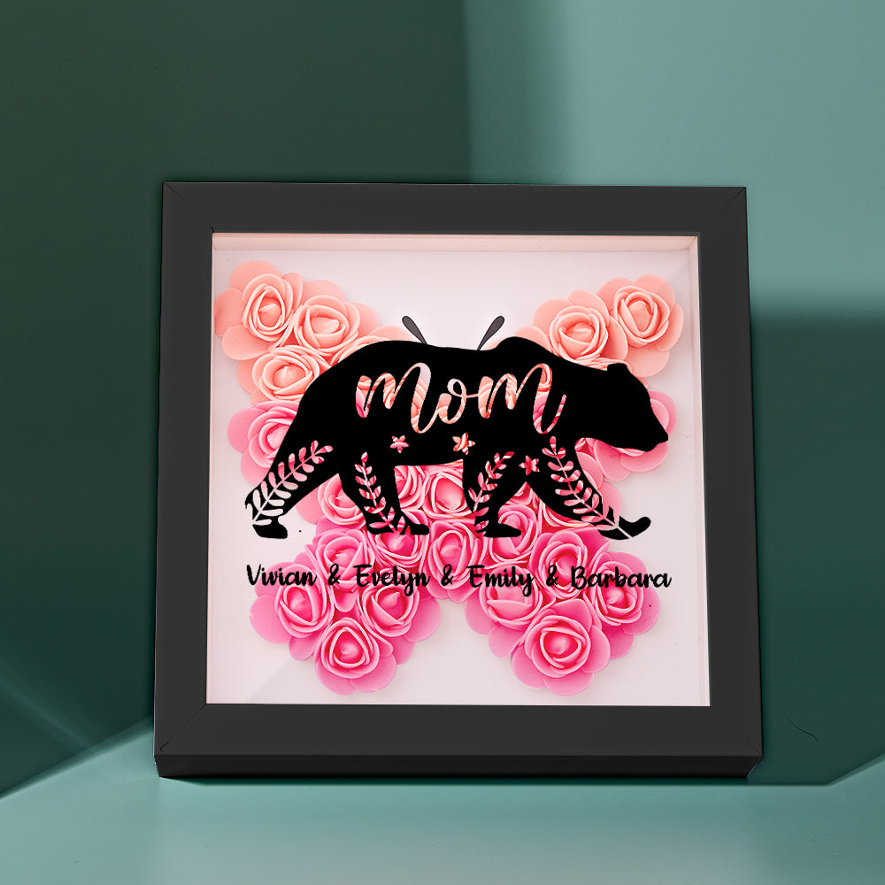 Personalisierte Namens-blumen-schattenbox, Personalisierter Bären-blumen-schattenbox-rahmen, Muttertagsgeschenk