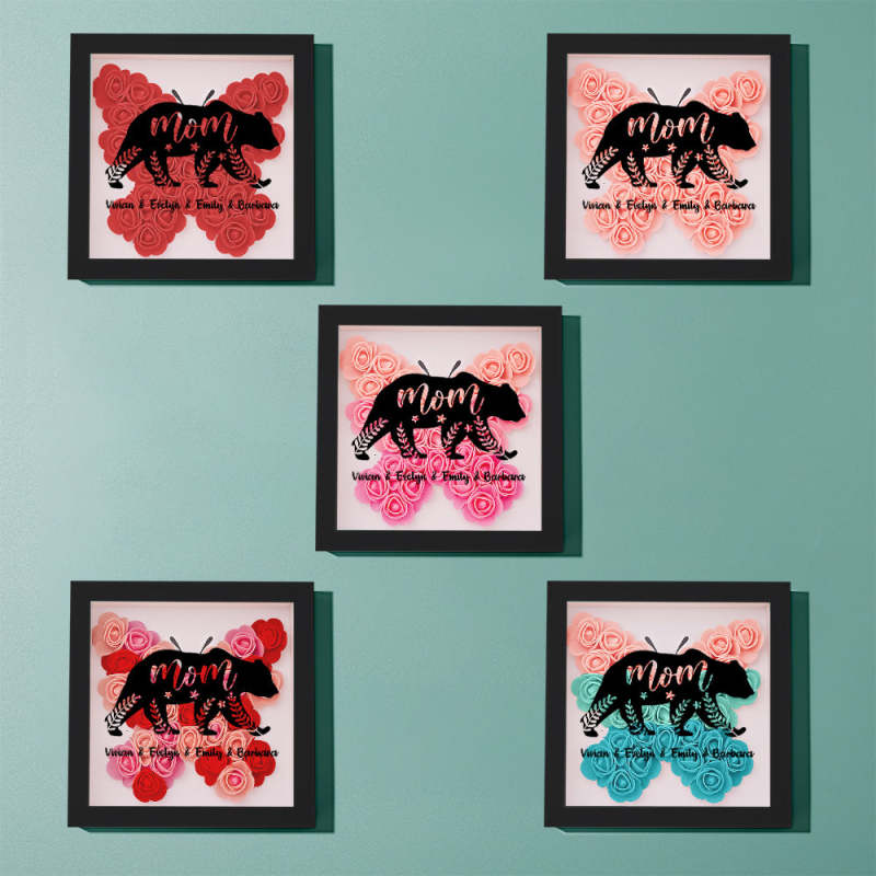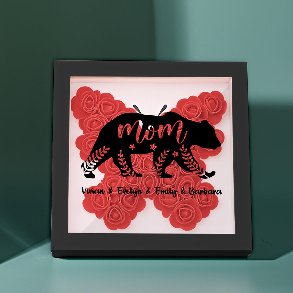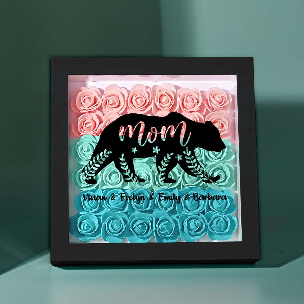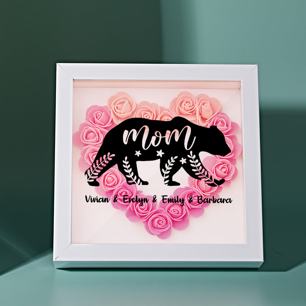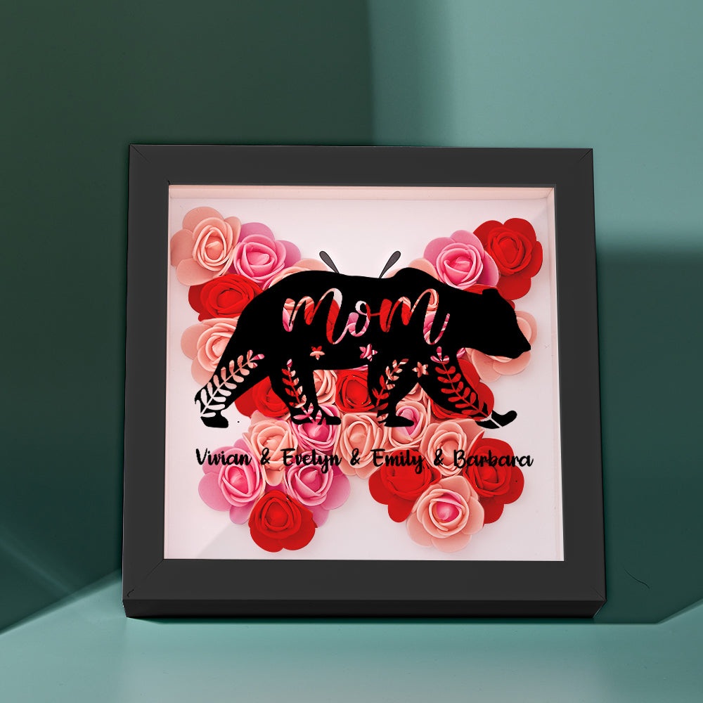 Personalisierte Namens-blumen-schattenbox, Personalisierter Bären-blumen-schattenbox-rahmen, Muttertagsgeschenk