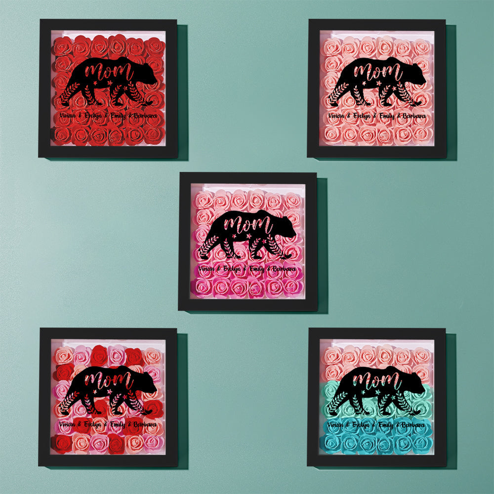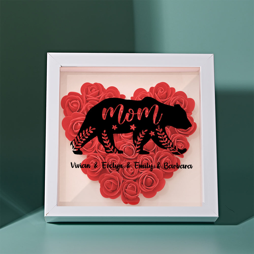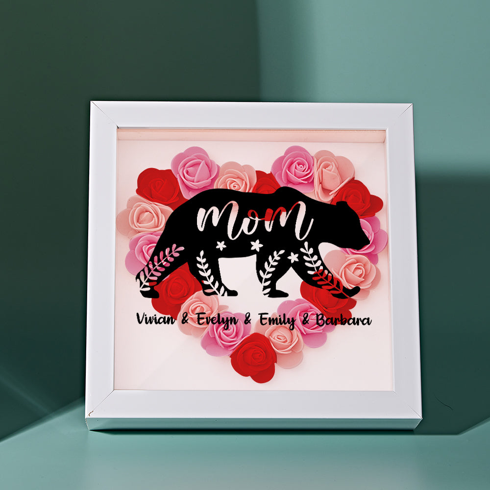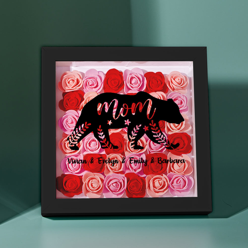 Personalisierte Namens-blumen-schattenbox, Personalisierter Bären-blumen-schattenbox-rahmen, Muttertagsgeschenk