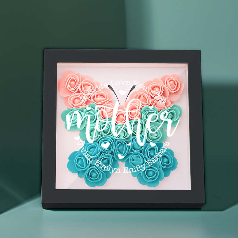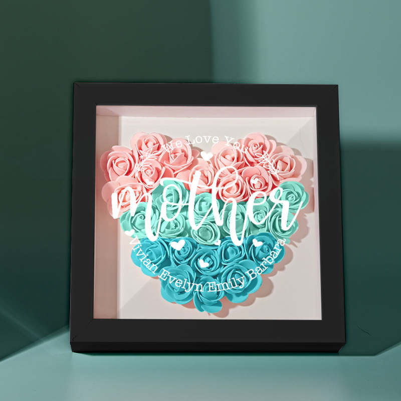 Personalisierter Blumen-schattenkasten Mit Namen, Personalisierter Blumen-schattenkasten-rahmen, Muttertagsgeschenk