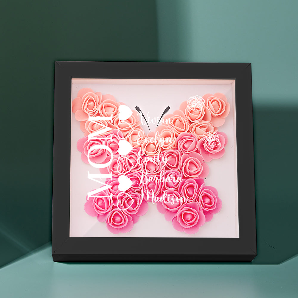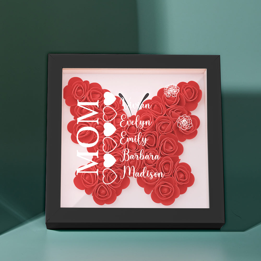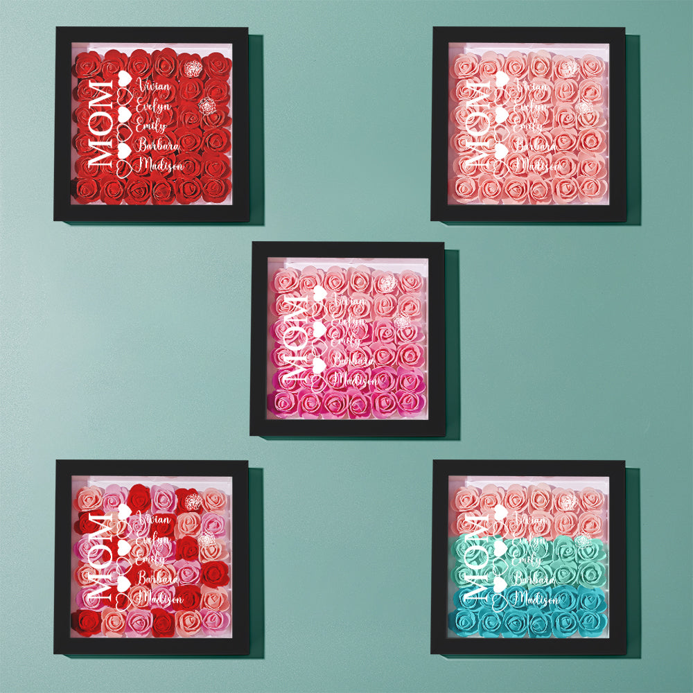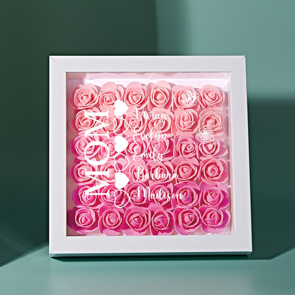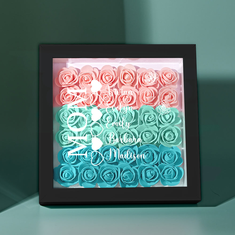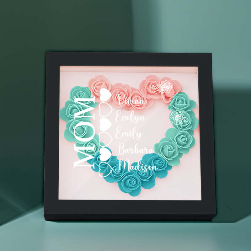 Personalisierte Namens-blumen-schattenbox, Personalisierter Herz-blumen-schattenbox-rahmen, Muttertagsgeschenk
