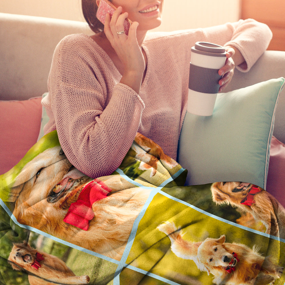 Unsere Fotodecken verwandeln warme Erinnerungen in gemütliche Nachmittage mit superscharfer Bildqualität. Kein Zuhause ist komplett ohne Fotodecken und individuell gestaltete Kissen.