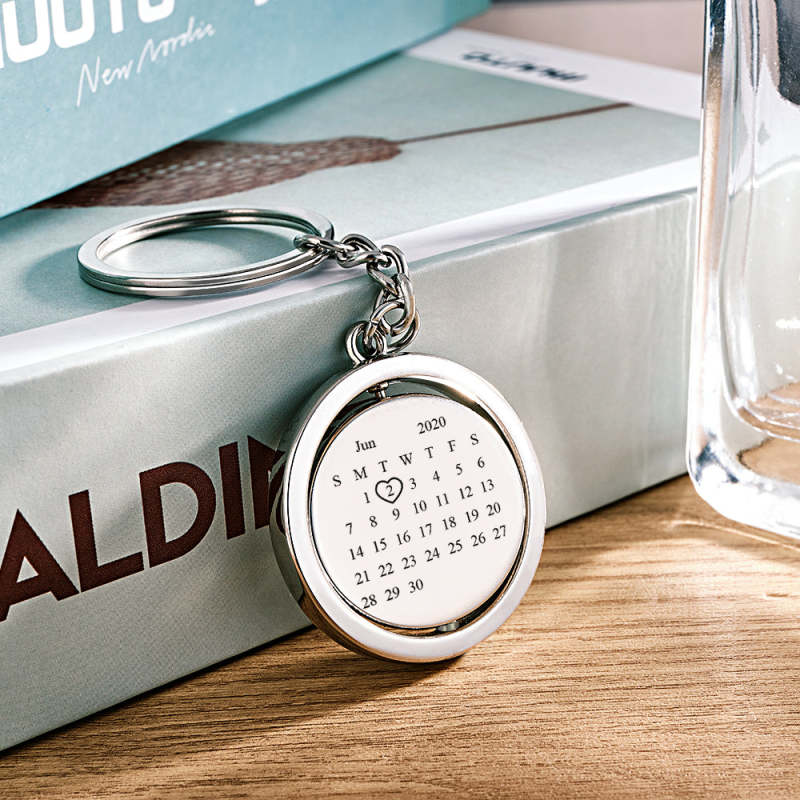 Benutzerdefinierter Fotokalender Schlüsselanhänger Drehbar Besonderes Datum Paar Jubiläumsgeschenke