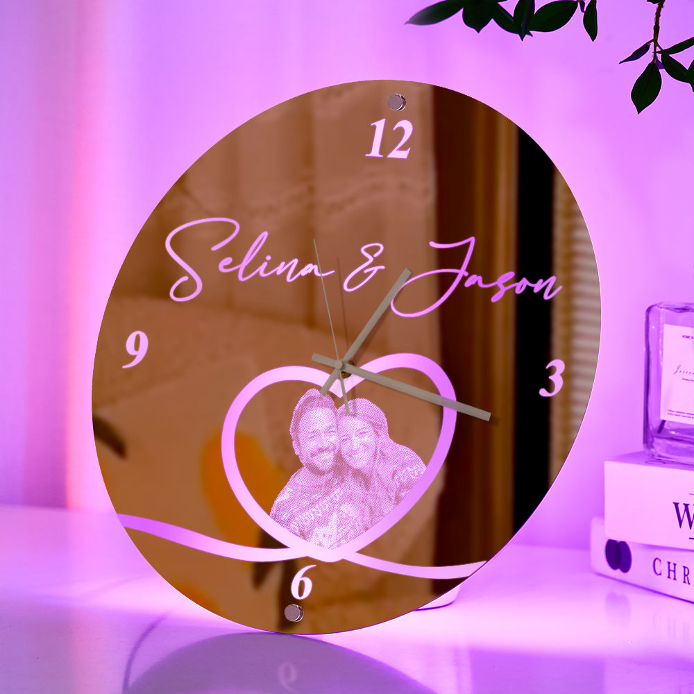 Personalisierte Fotouhr Mit Personalisiertem Namen, Spiegellicht, Wanddekoration