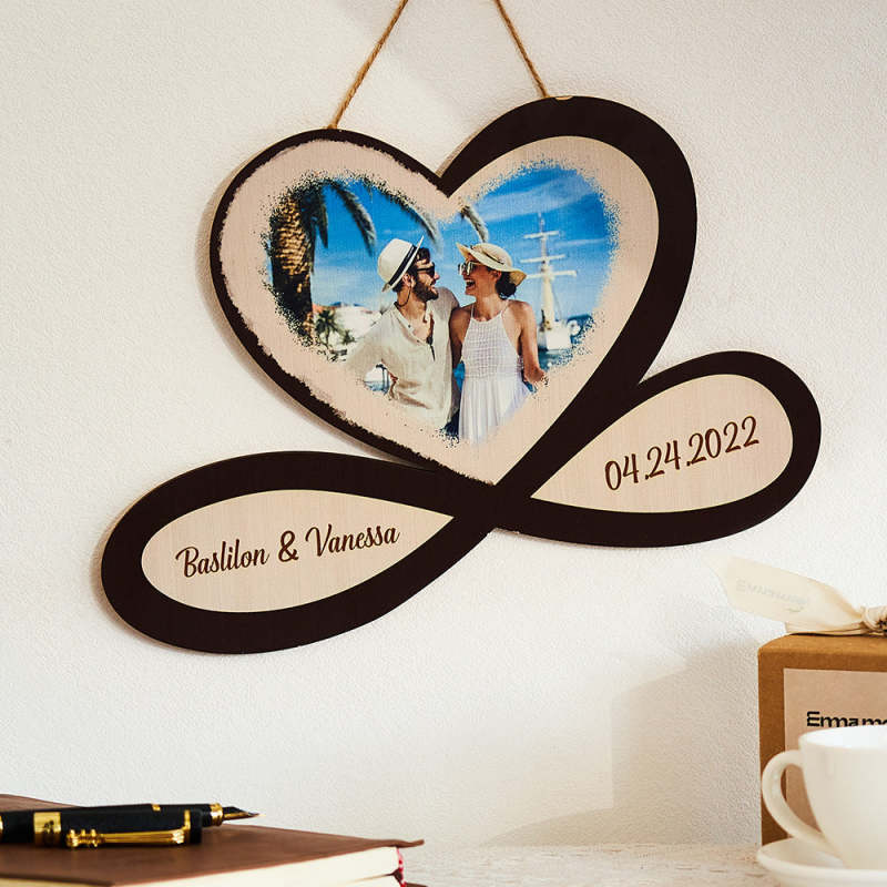 Kundenspezifischer Foto-gravur-anhänger Unendlichkeits-herz-holzgeschenke