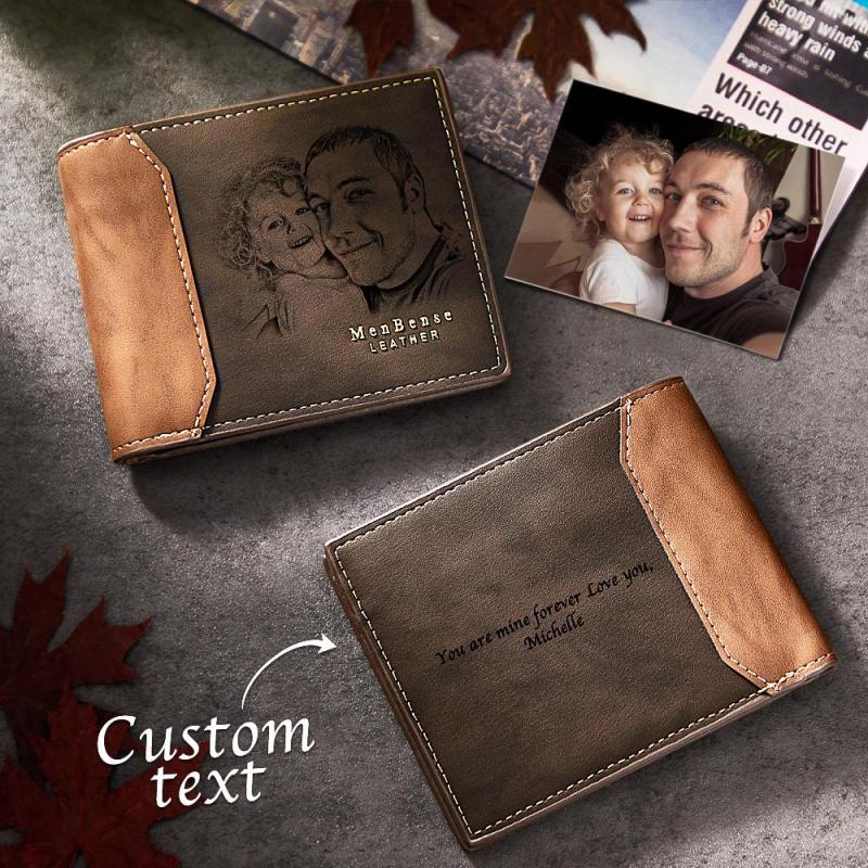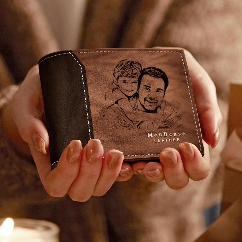 Benutzerdefiniertes Foto Graviert Wallet Shadow Leder Einfache Geschenke
