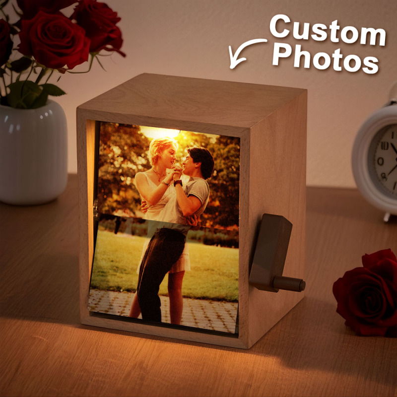 Individuell Gestaltbarer Foto-flipbook-rahmen, Vertikal, 13 X 16 Cm, Mechanisches Flipbook Mit Handkurbel Und Beleuchtung, Erinnerungsgeschenk