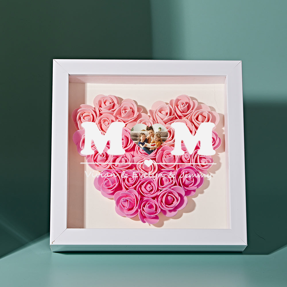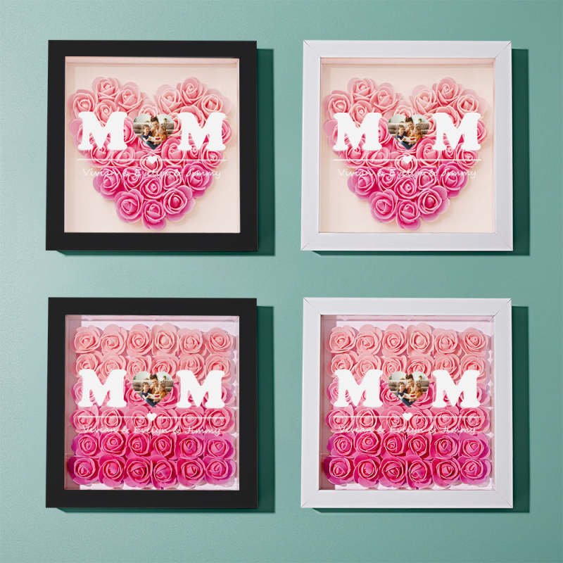 Benutzerdefinierte Foto-blumen-schaukasten-personalisierte Herz-steigungs-rosa-blumen-schaukasten-rahmen-geschenk Für Mamma