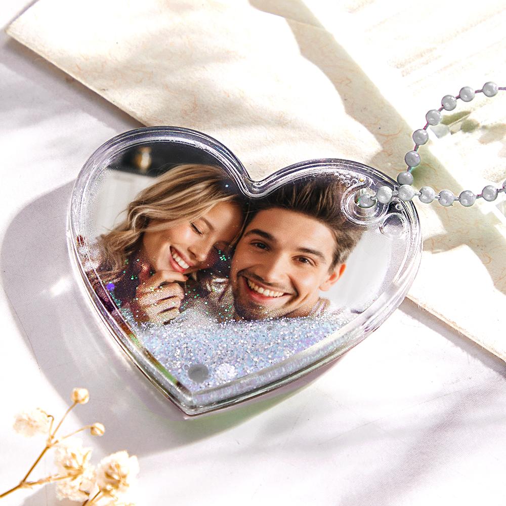 Individueller Foto-schlüsselanhänger In Herzform Mit Treibsand-geschenken Für Sie