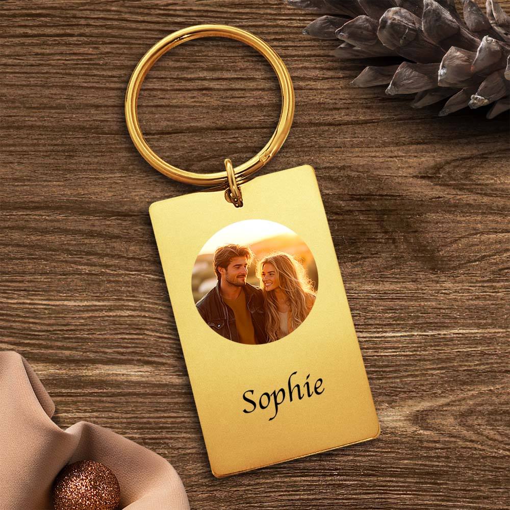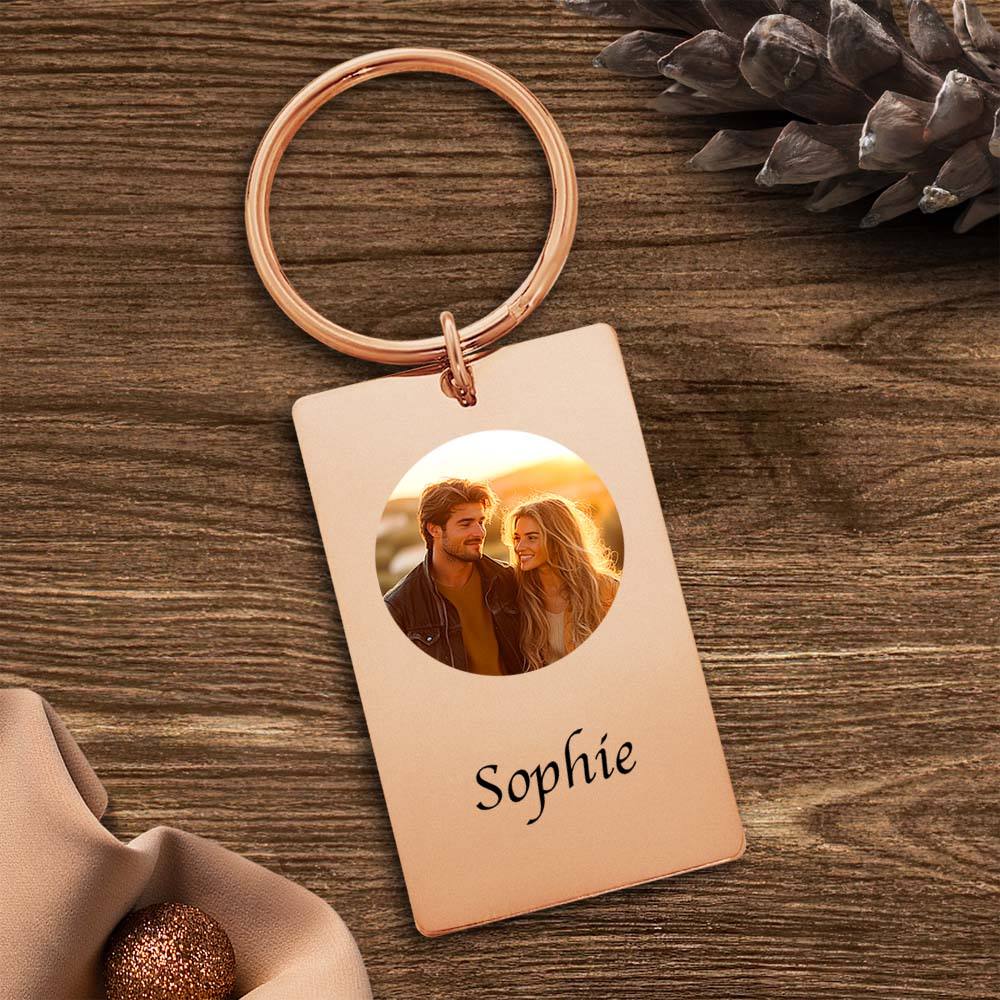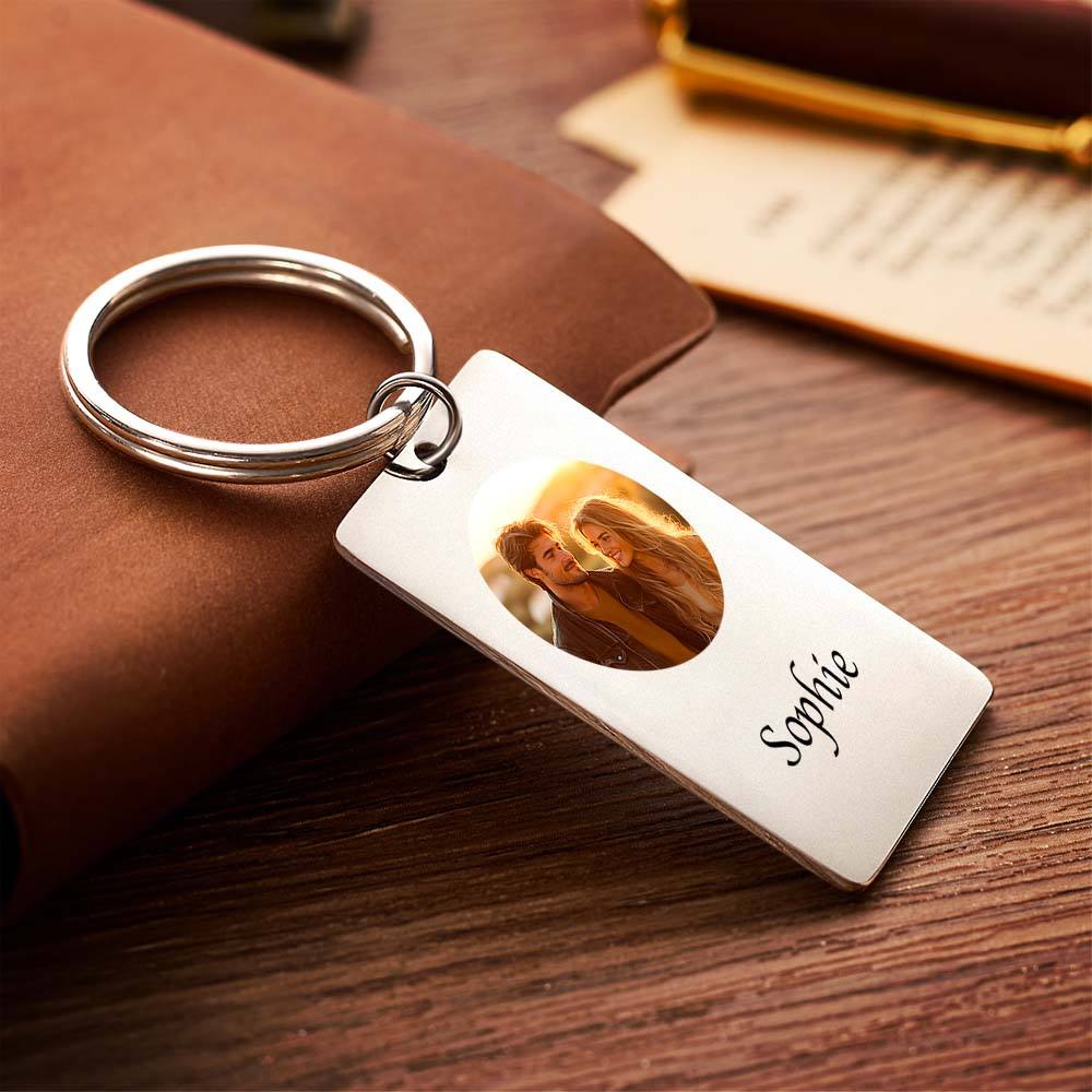 Individueller Foto-schlüsselanhänger Mit Text-paar-geschenkidee, Schwarz-weiß-filter