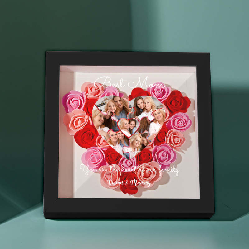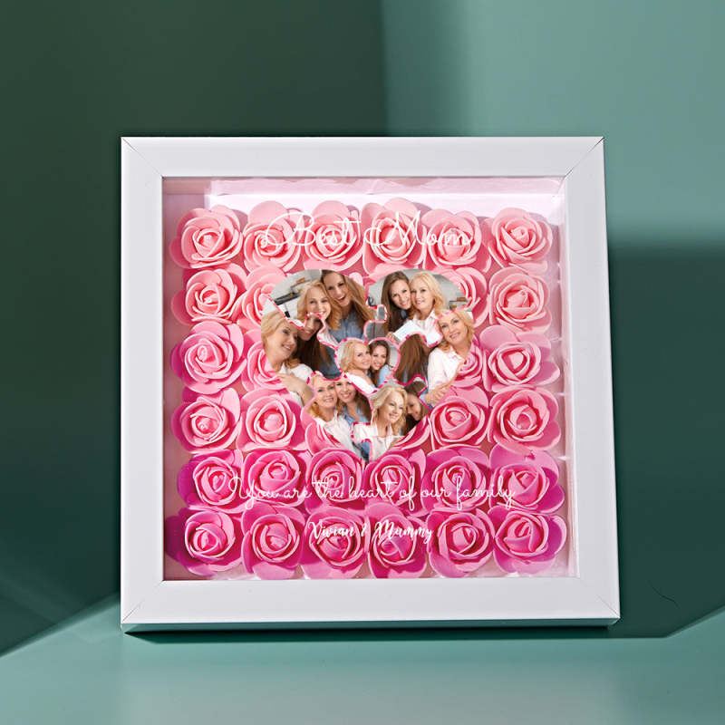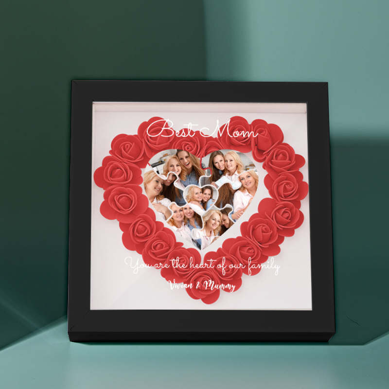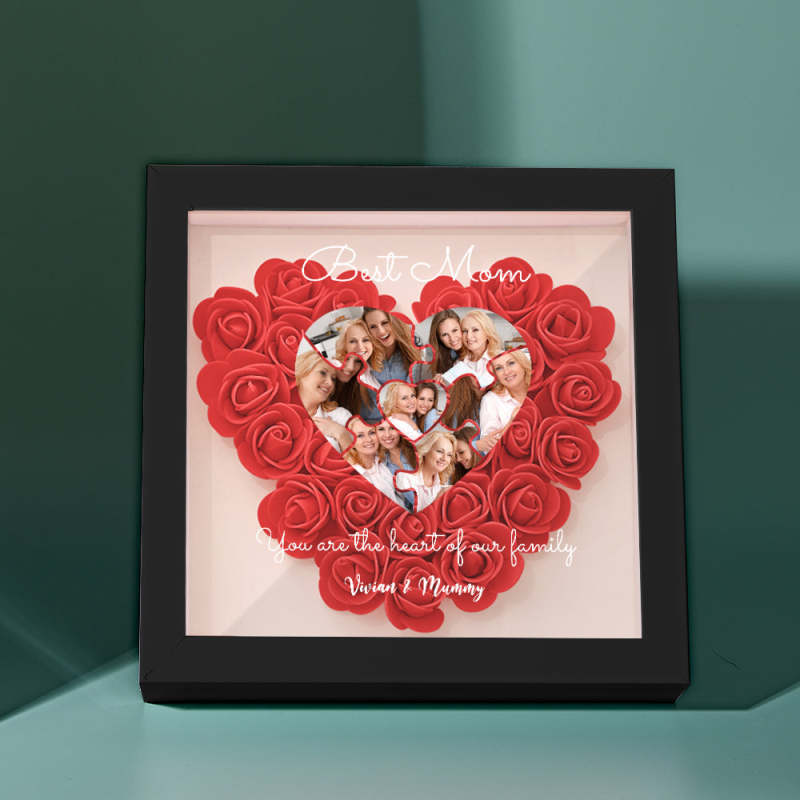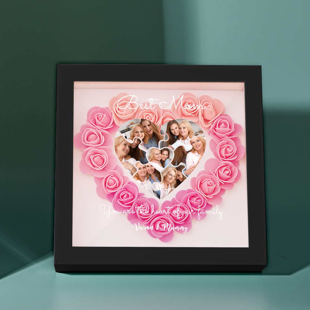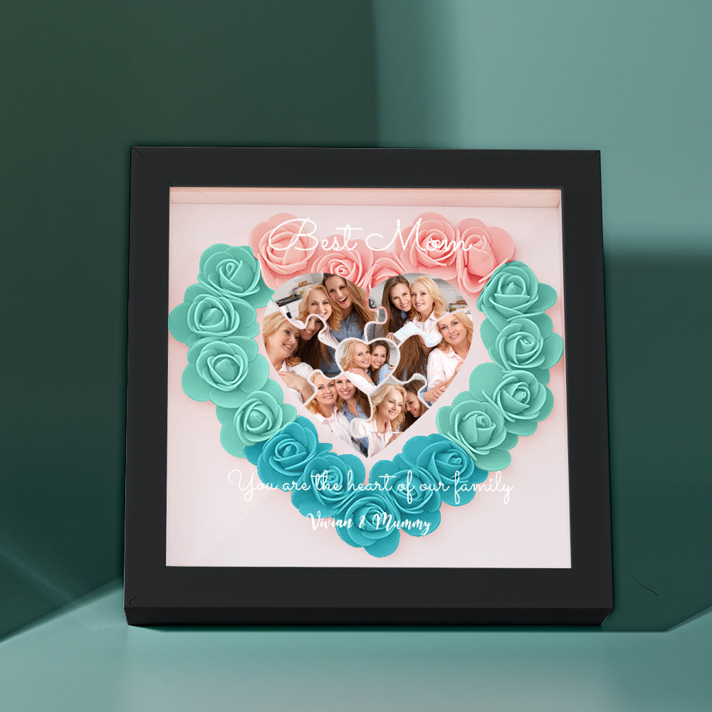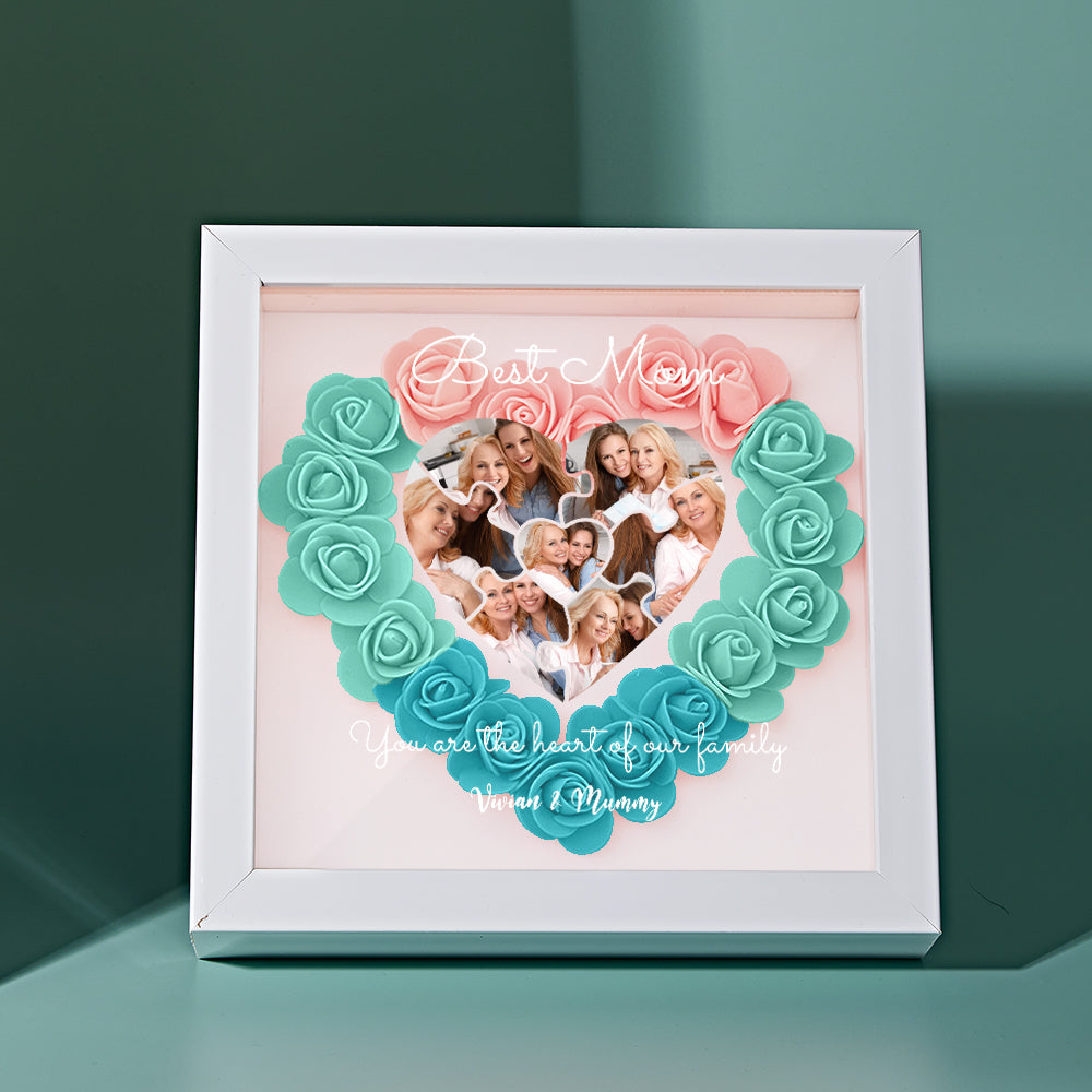 Personalisiertes Fotopuzzle, Blumen-schattenbox, Personalisierter Blumen-schattenbox-rahmen, Muttertagsgeschenk