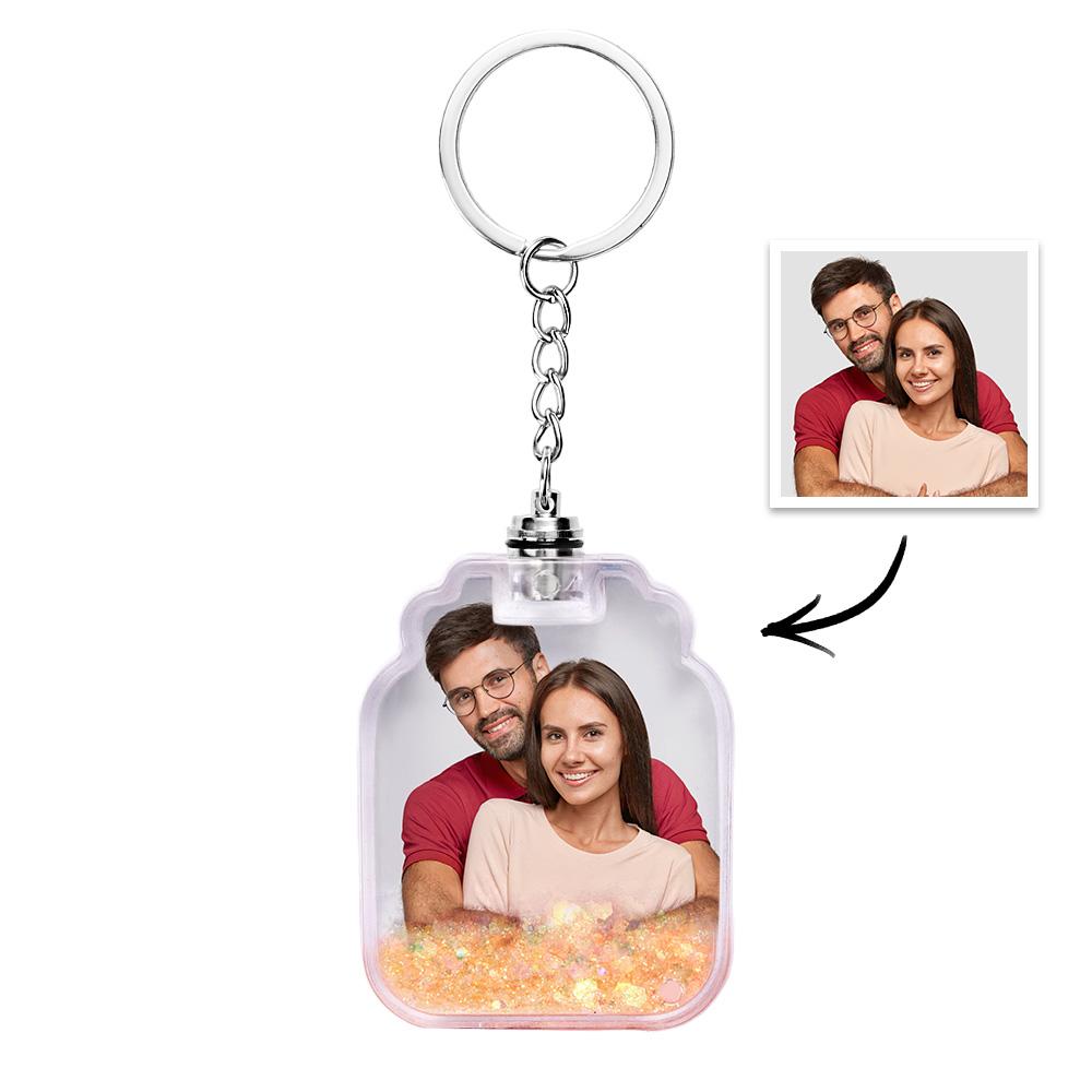 Personalisierter Treibsand-schlüsselanhänger In Treibflaschenform Mit Foto