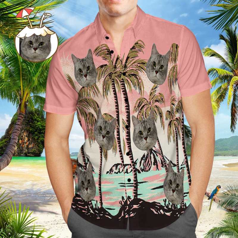 Benutzerdefinierte Haustier Gesicht Hawaiihemden Personalisierte Hawaiihemd Kurzarm Regular Fit Blumenhemden