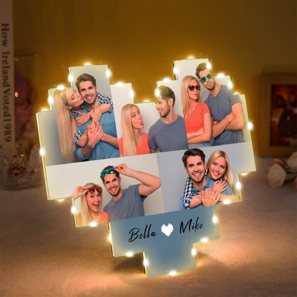 Personalisierte Bild Collage Foto Lampe Geschenke fuer Verliebte Acryl Herz