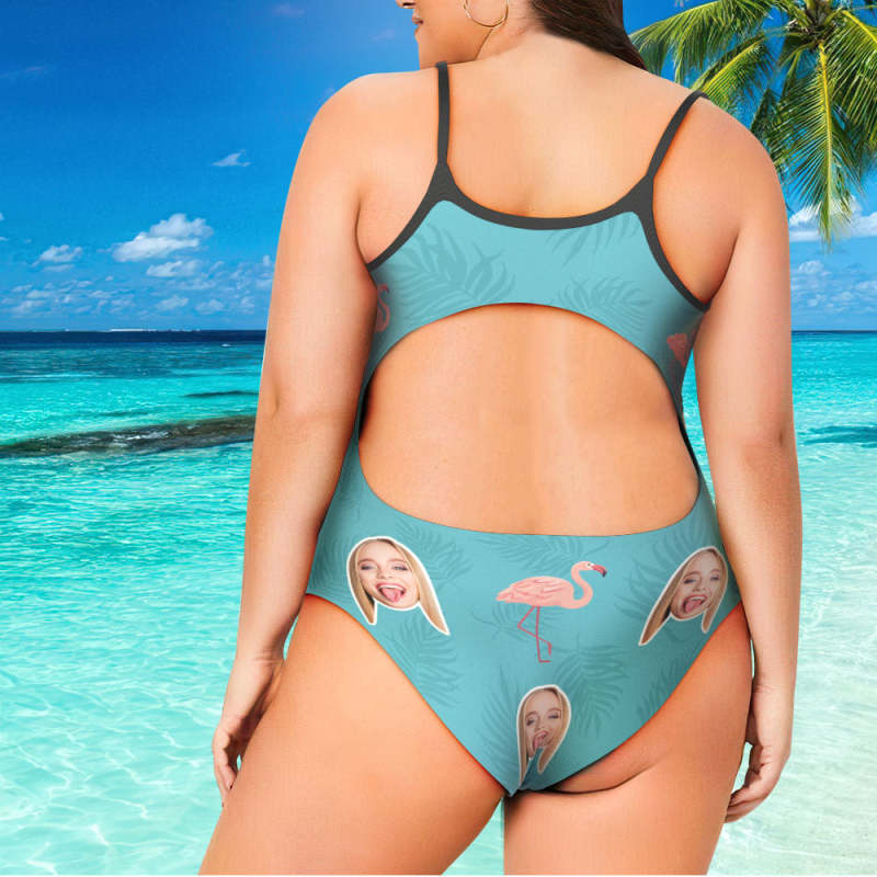 Einteiliger Badeanzug, Individuell Gestalteter Badeanzug In Übergröße, Gesichts-badeanzug, Individueller Badeanzug Mit Gesicht – Flamingo